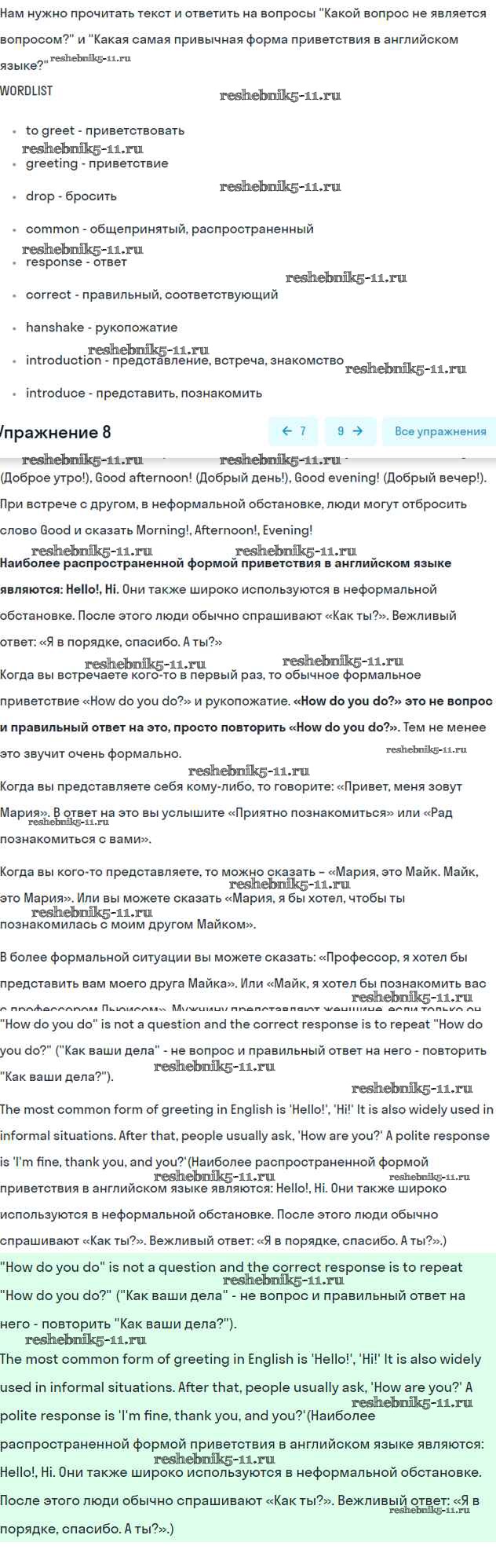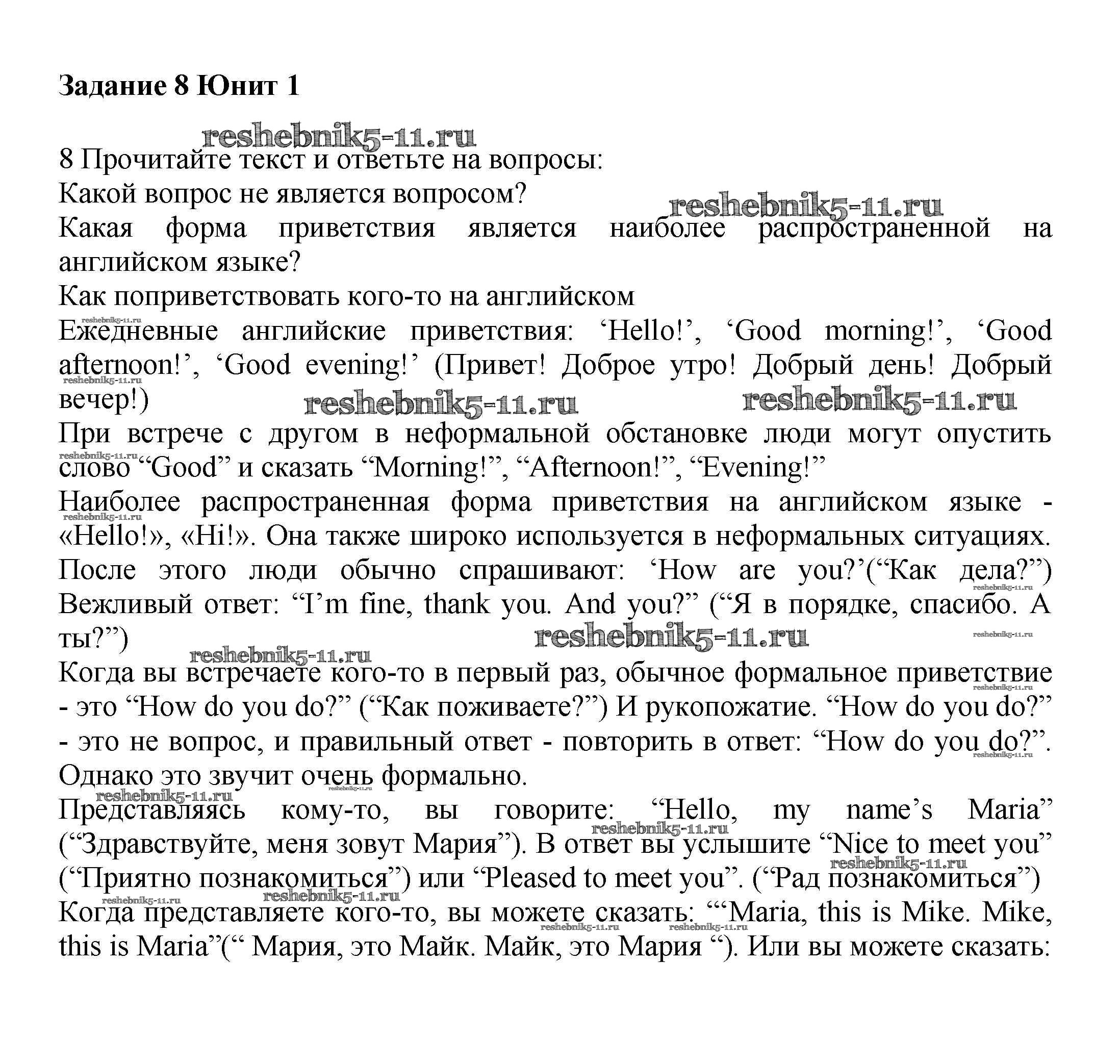 Готовая домашняя работа с ответами по Английскому языку за 6 класс Вербицкая, Гаярделли, Редли, Савчук Учебник Forward Часть 1, 2 Вентана-граф 2017 ФГОС - Unit 1. Greetings and introductions 8