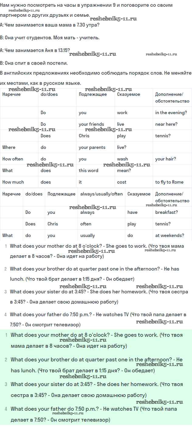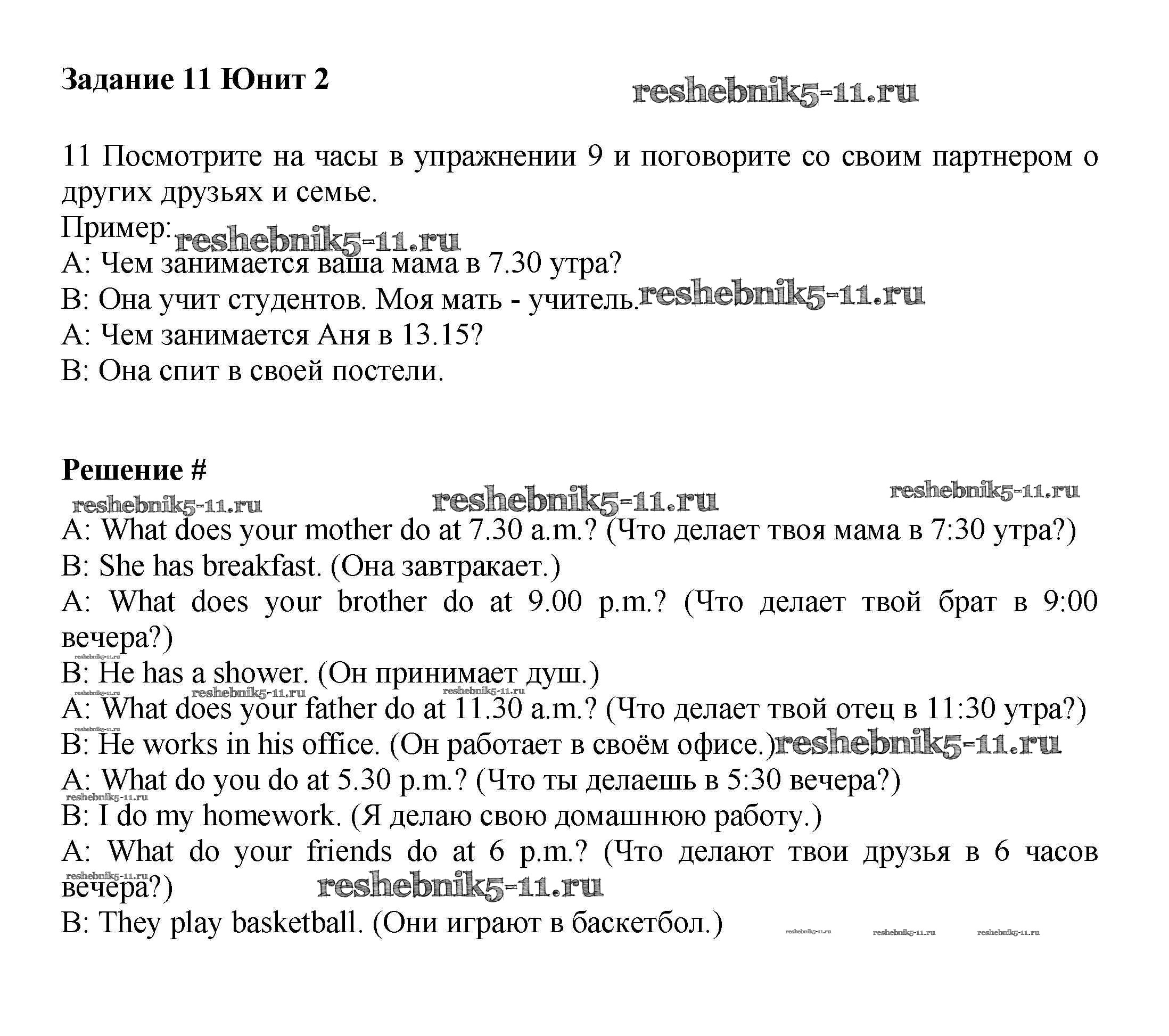 Готовая домашняя работа с ответами по Английскому языку за 6 класс Вербицкая, Гаярделли, Редли, Савчук Учебник Forward Часть 1, 2 Вентана-граф 2017 ФГОС - Unit 2. Daily routines 11