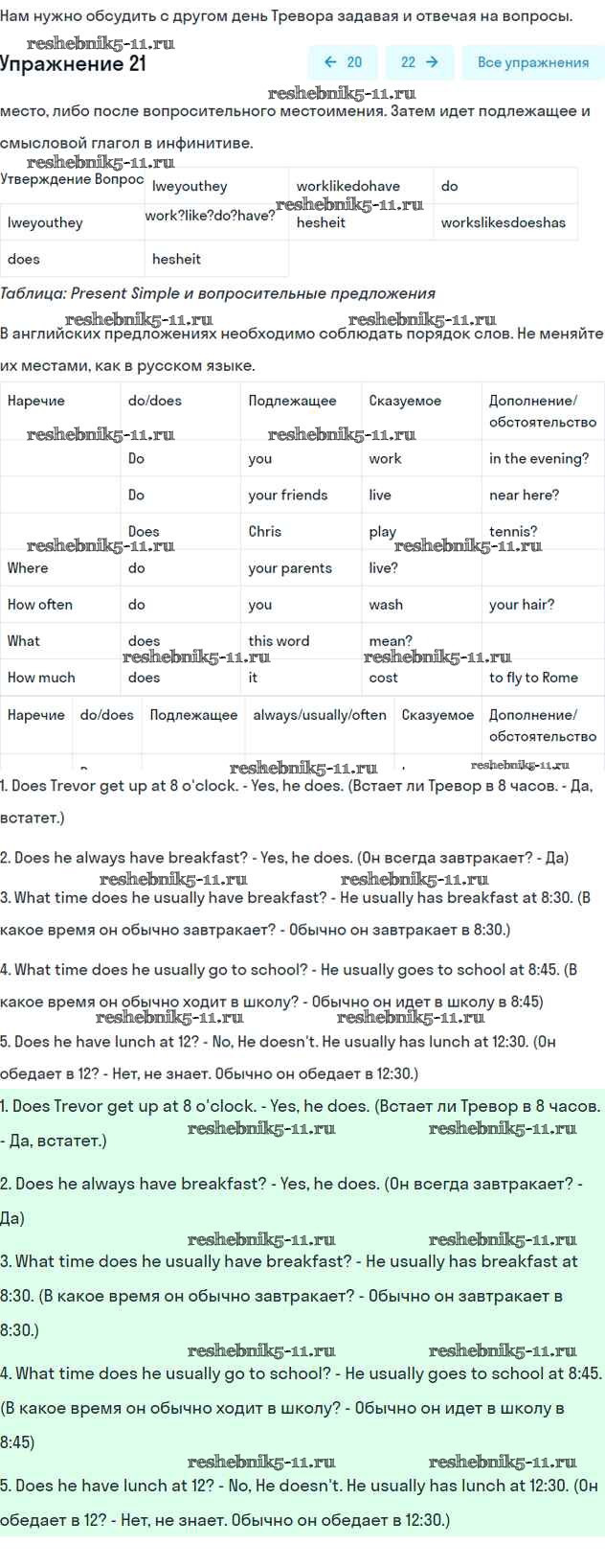 Готовая домашняя работа с ответами по Английскому языку за 6 класс Вербицкая, Гаярделли, Редли, Савчук Учебник Forward Часть 1, 2 Вентана-граф 2017 ФГОС - Unit 2. Daily routines 21