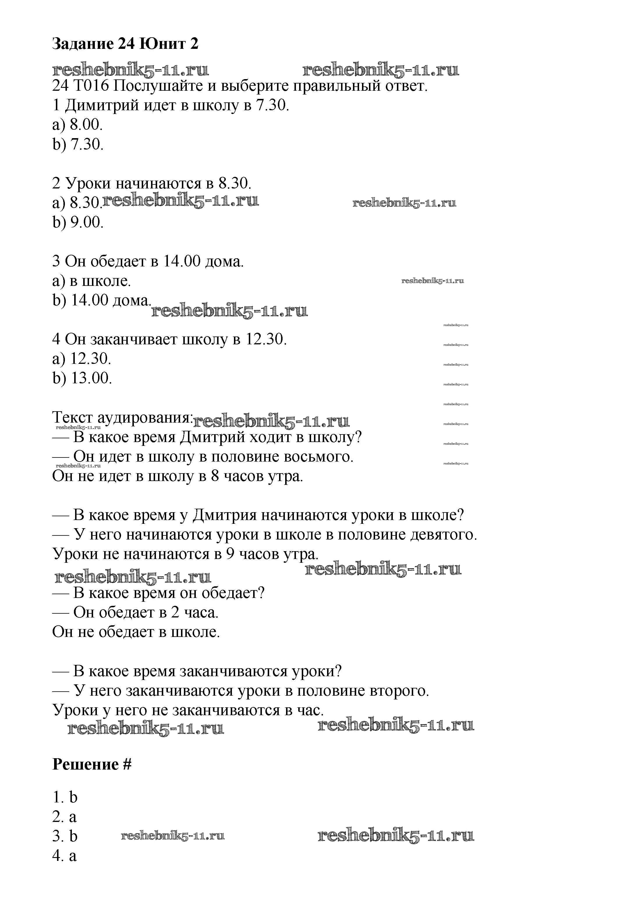 Готовая домашняя работа с ответами по Английскому языку за 6 класс Вербицкая, Гаярделли, Редли, Савчук Учебник Forward Часть 1, 2 Вентана-граф 2017 ФГОС - Unit 2. Daily routines 24