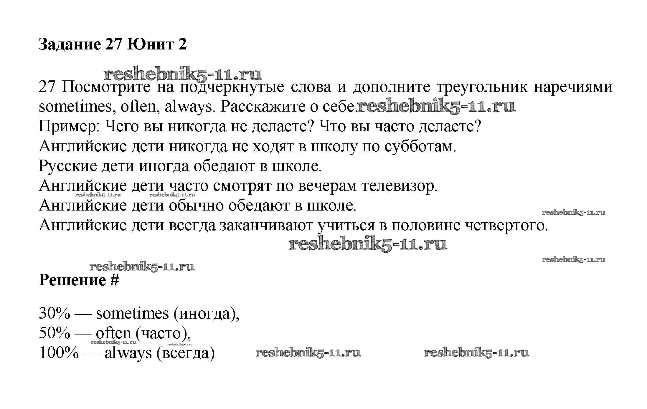 Готовая домашняя работа с ответами по Английскому языку за 6 класс Вербицкая, Гаярделли, Редли, Савчук Учебник Forward Часть 1, 2 Вентана-граф 2017 ФГОС - Unit 2. Daily routines 27