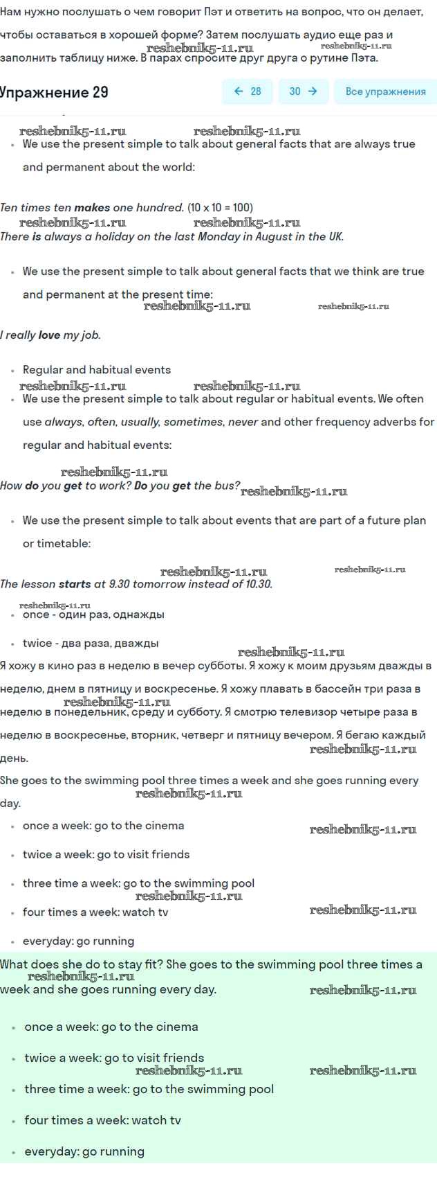 Готовая домашняя работа с ответами по Английскому языку за 6 класс Вербицкая, Гаярделли, Редли, Савчук Учебник Forward Часть 1, 2 Вентана-граф 2017 ФГОС - Unit 2. Daily routines 29