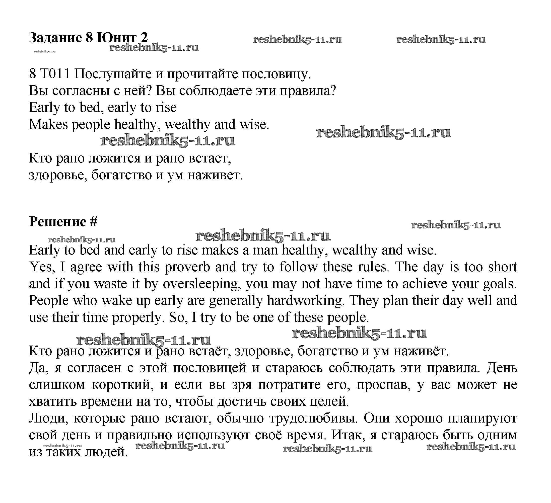 Готовая домашняя работа с ответами по Английскому языку за 6 класс Вербицкая, Гаярделли, Редли, Савчук Учебник Forward Часть 1, 2 Вентана-граф 2017 ФГОС - Unit 2. Daily routines 8