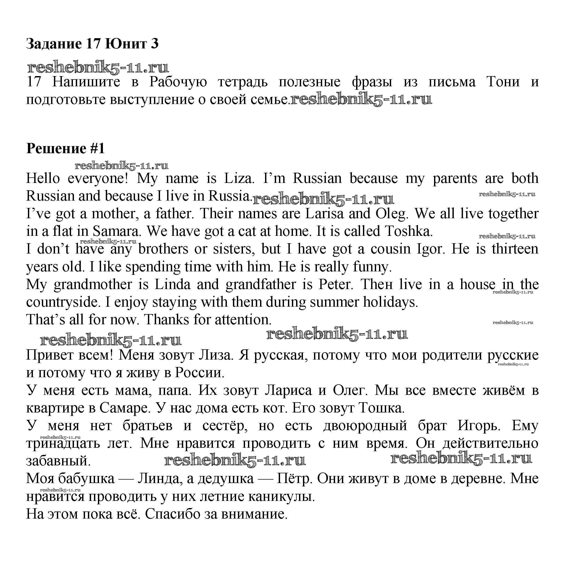 Готовая домашняя работа с ответами по Английскому языку за 6 класс Вербицкая, Гаярделли, Редли, Савчук Учебник Forward Часть 1, 2 Вентана-граф 2017 ФГОС - Unit 3. Family members 17