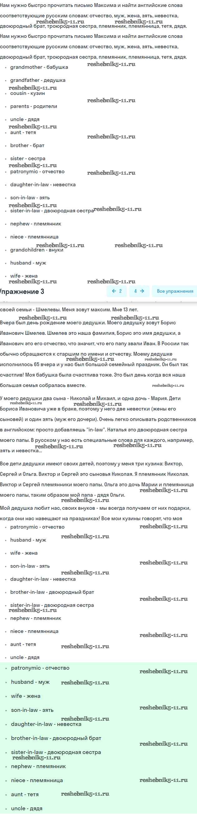 Готовая домашняя работа с ответами по Английскому языку за 6 класс Вербицкая, Гаярделли, Редли, Савчук Учебник Forward Часть 1, 2 Вентана-граф 2017 ФГОС - Unit 3. Family members 3