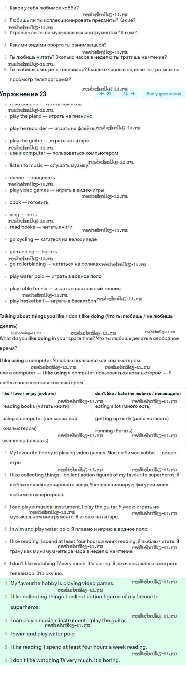 Готовая домашняя работа с ответами по Английскому языку за 6 класс Вербицкая, Гаярделли, Редли, Савчук Учебник Forward Часть 1, 2 Вентана-граф 2017 ФГОС - Unit 4. Favourite things 23