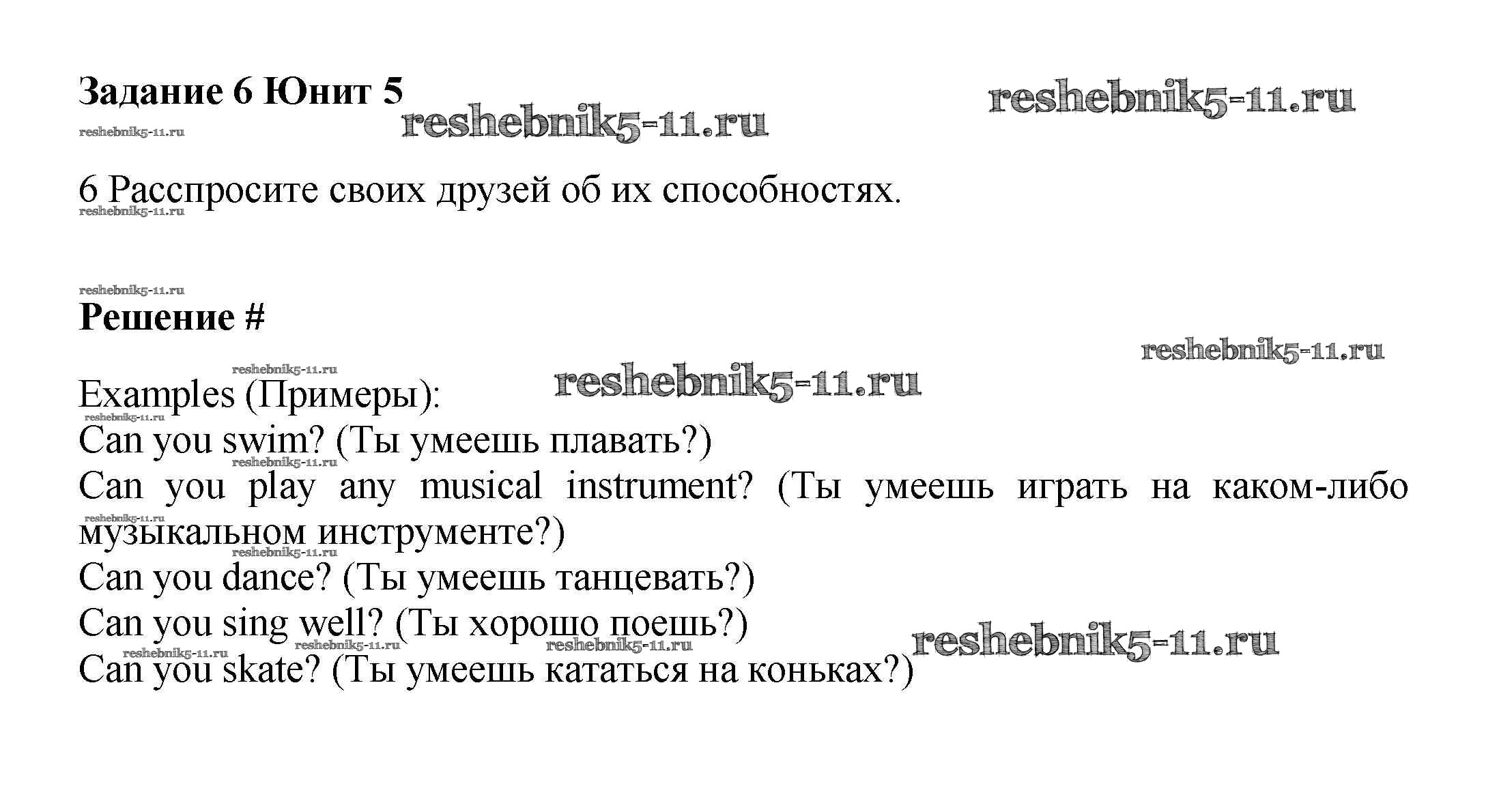 Готовая домашняя работа с ответами по Английскому языку за 6 класс Вербицкая, Гаярделли, Редли, Савчук Учебник Forward Часть 1, 2 Вентана-граф 2017 ФГОС - Unit 5. Talking about abilities 6