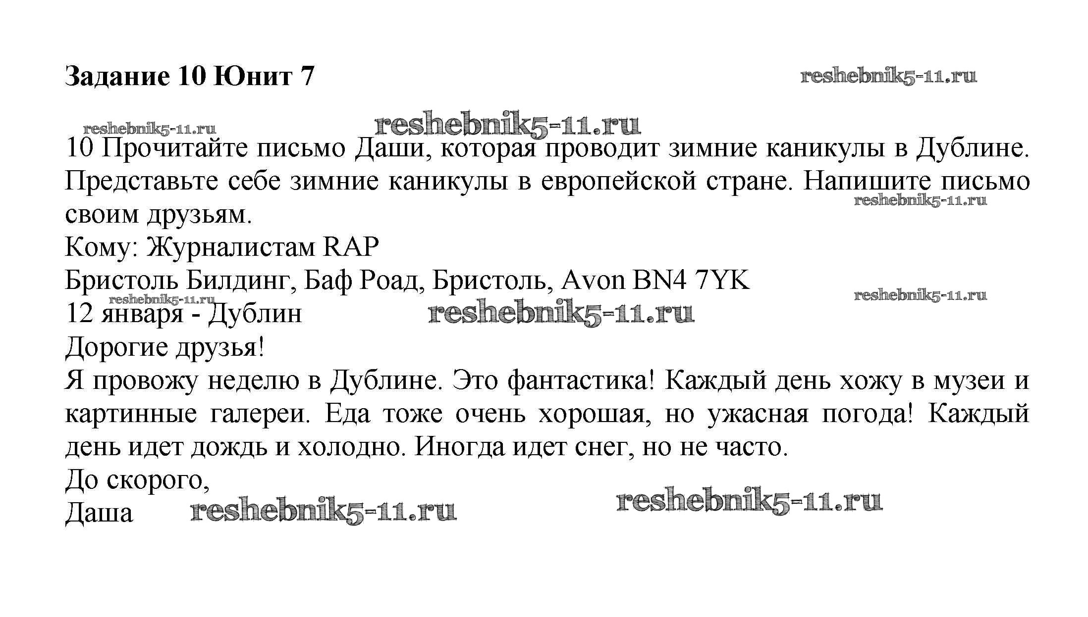 Готовая домашняя работа с ответами по Английскому языку за 6 класс Вербицкая, Гаярделли, Редли, Савчук Учебник Forward Часть 1, 2 Вентана-граф 2017 ФГОС - Unit 7. A postcard from another country 10