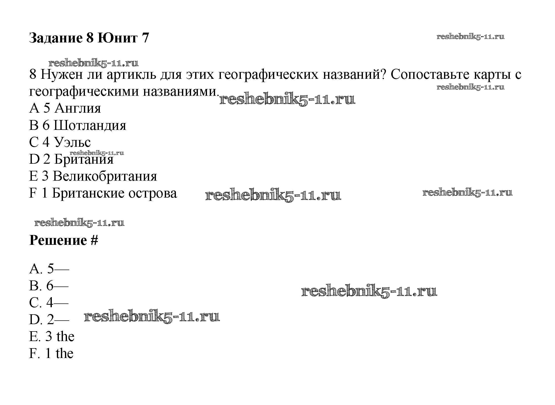 Готовая домашняя работа с ответами по Английскому языку за 6 класс Вербицкая, Гаярделли, Редли, Савчук Учебник Forward Часть 1, 2 Вентана-граф 2017 ФГОС - Unit 7. A postcard from another country 8