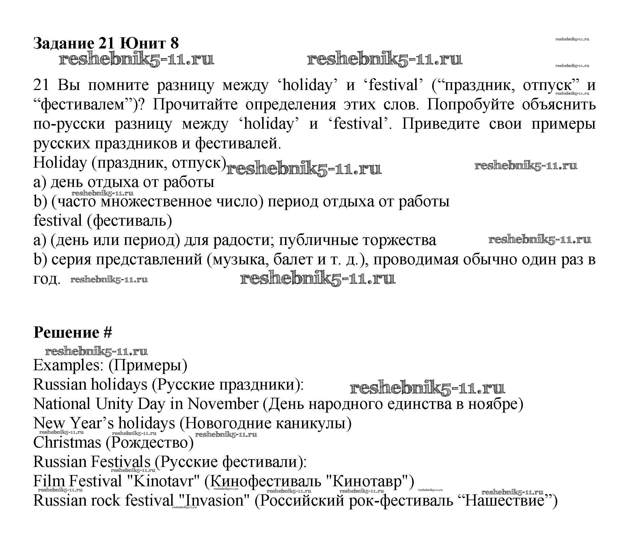Готовая домашняя работа с ответами по Английскому языку за 6 класс Вербицкая, Гаярделли, Редли, Савчук Учебник Forward Часть 1, 2 Вентана-граф 2017 ФГОС - Unit 8. Holidays and travelling 21