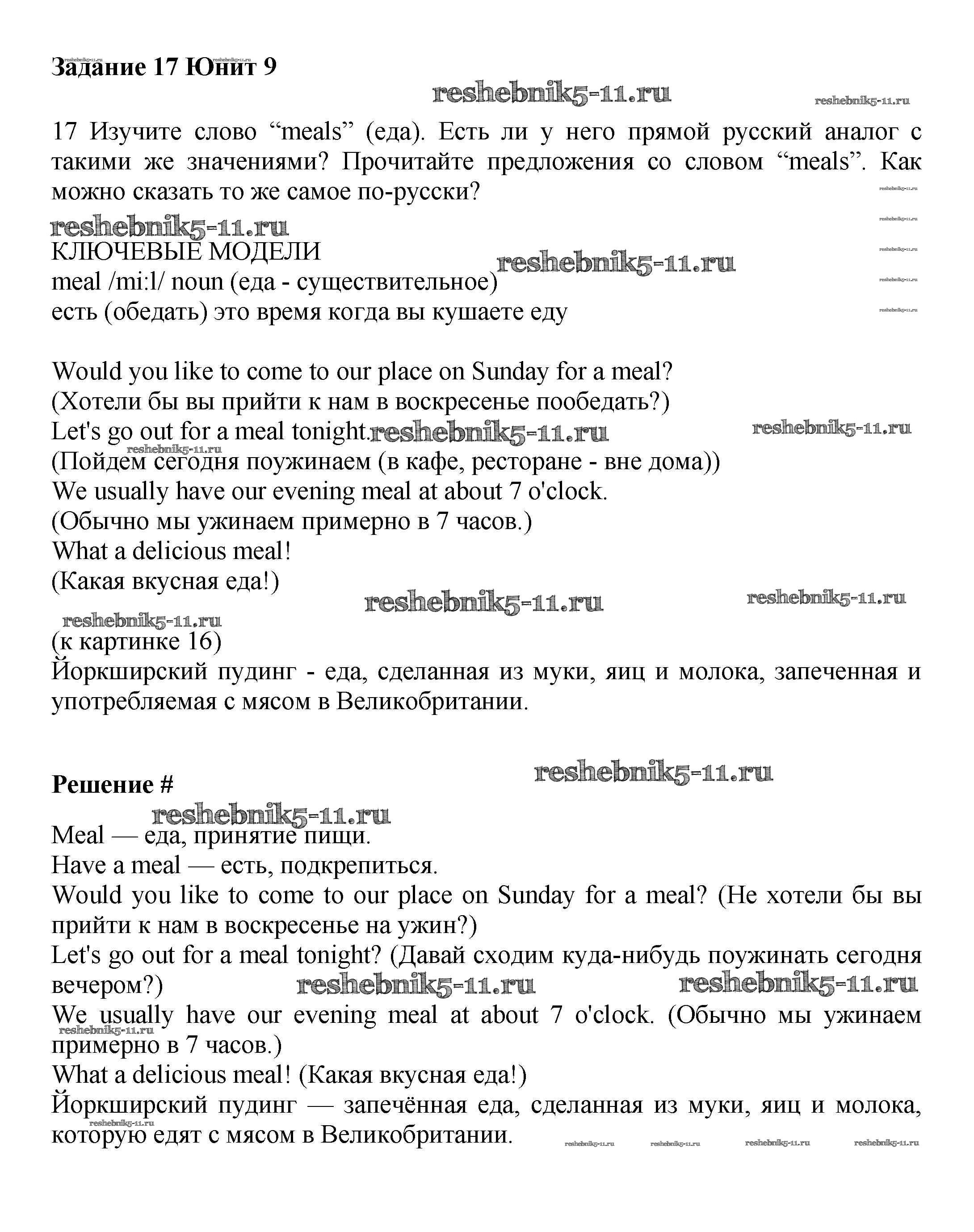 Готовая домашняя работа с ответами по Английскому языку за 6 класс Вербицкая, Гаярделли, Редли, Савчук Учебник Forward Часть 1, 2 Вентана-граф 2017 ФГОС - Unit 9. Eating traditions and customs 17