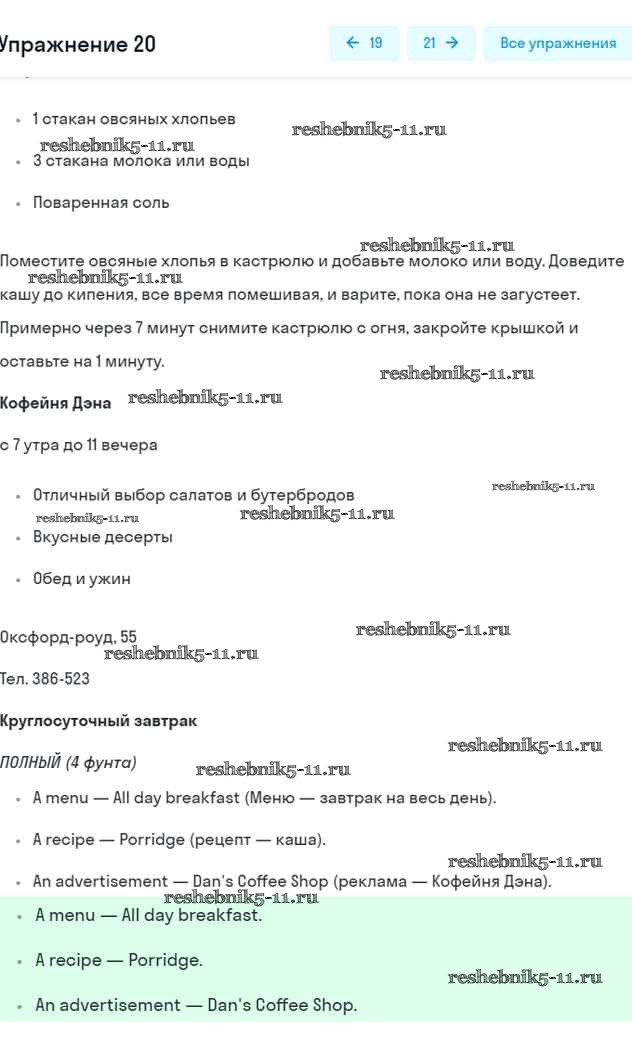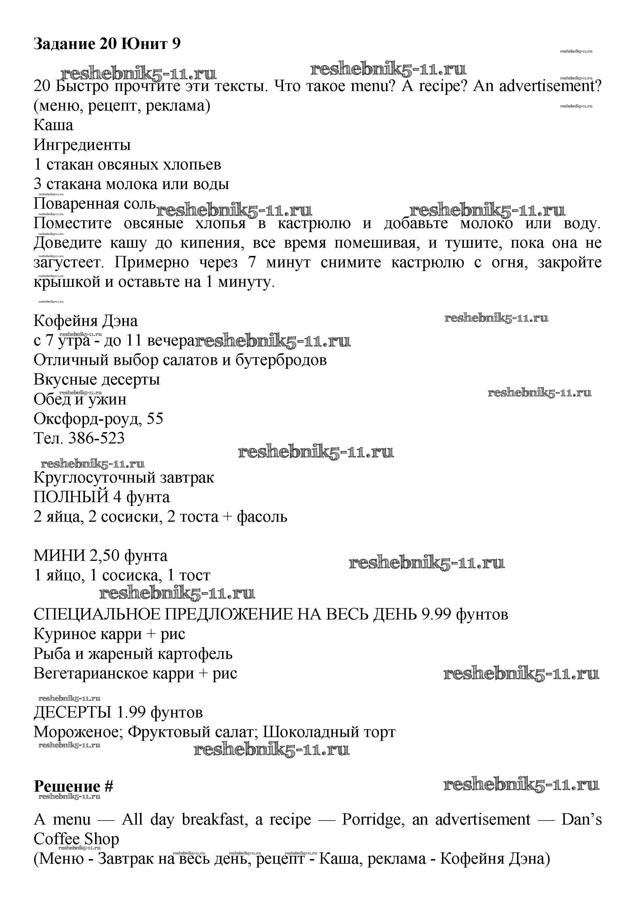 Готовая домашняя работа с ответами по Английскому языку за 6 класс Вербицкая, Гаярделли, Редли, Савчук Учебник Forward Часть 1, 2 Вентана-граф 2017 ФГОС - Unit 9. Eating traditions and customs 20