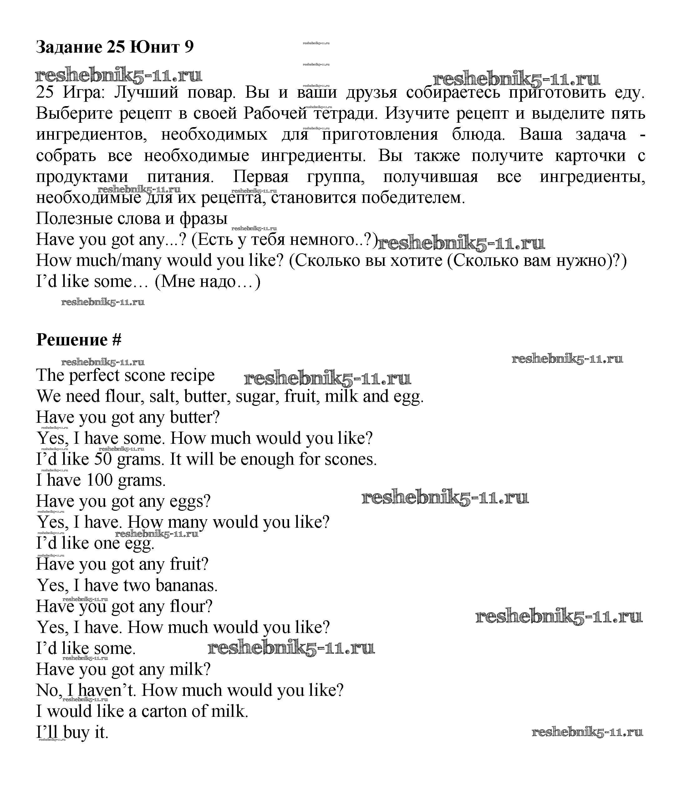Готовая домашняя работа с ответами по Английскому языку за 6 класс Вербицкая, Гаярделли, Редли, Савчук Учебник Forward Часть 1, 2 Вентана-граф 2017 ФГОС - Unit 9. Eating traditions and customs 25