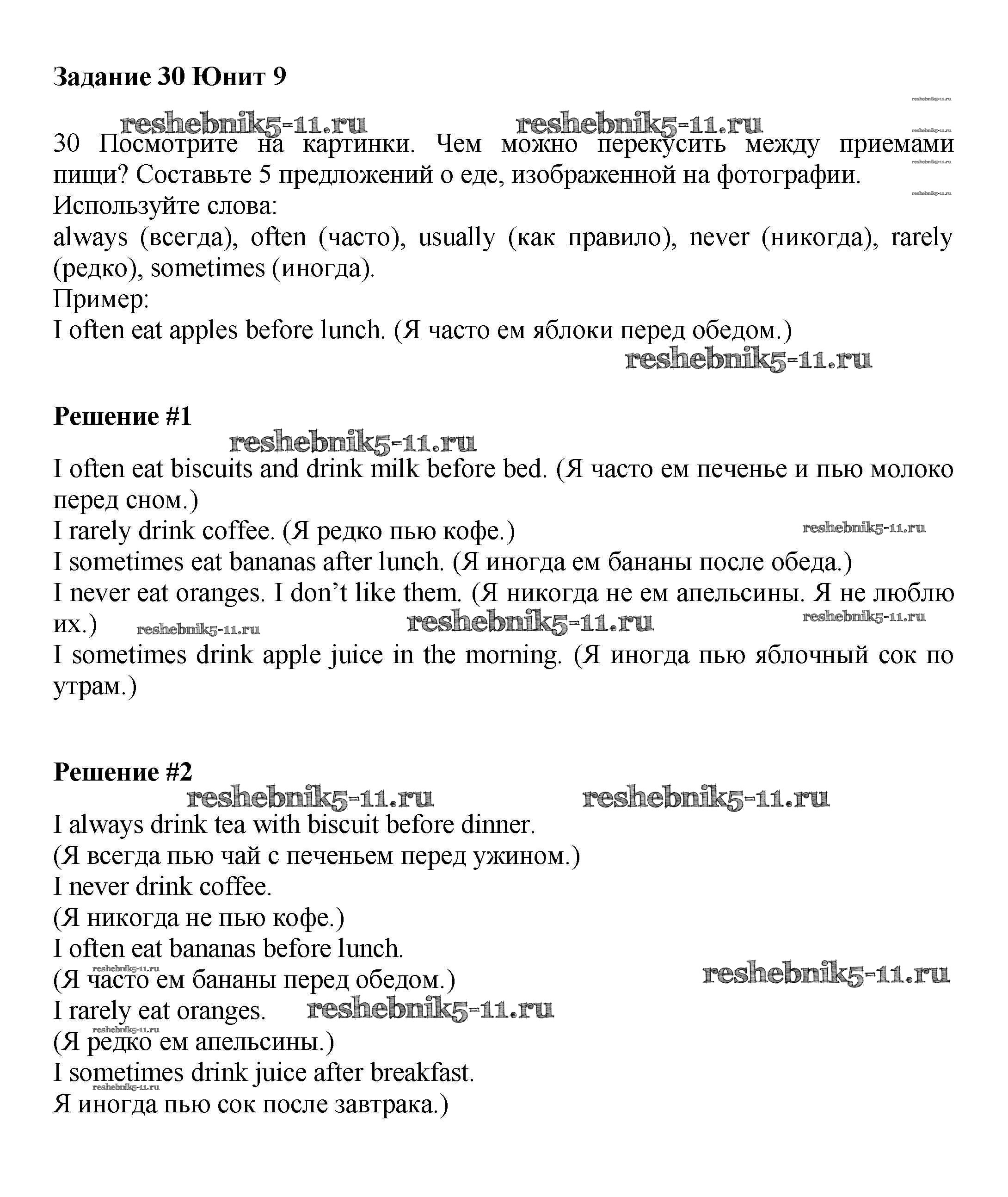 Готовая домашняя работа с ответами по Английскому языку за 6 класс Вербицкая, Гаярделли, Редли, Савчук Учебник Forward Часть 1, 2 Вентана-граф 2017 ФГОС - Unit 9. Eating traditions and customs 30