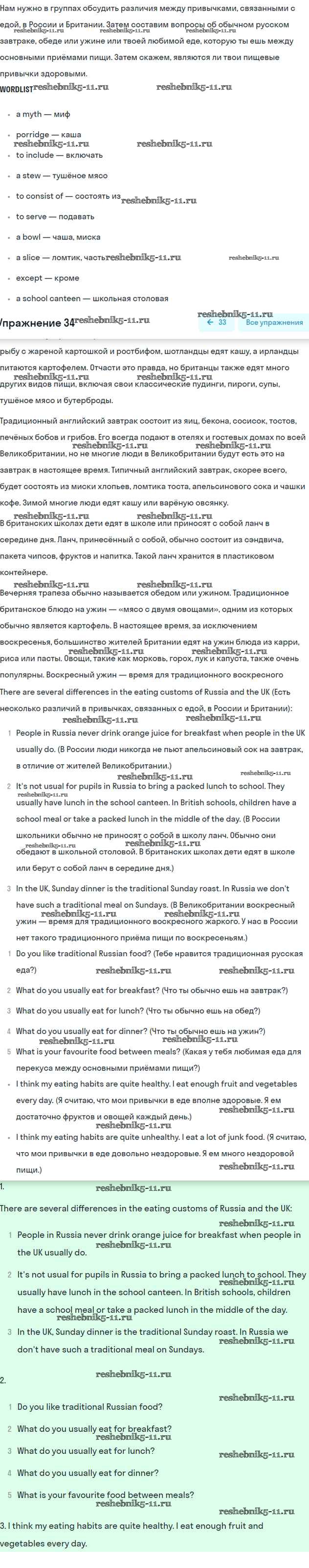 Готовая домашняя работа с ответами по Английскому языку за 6 класс Вербицкая, Гаярделли, Редли, Савчук Учебник Forward Часть 1, 2 Вентана-граф 2017 ФГОС - Unit 9. Eating traditions and customs 34