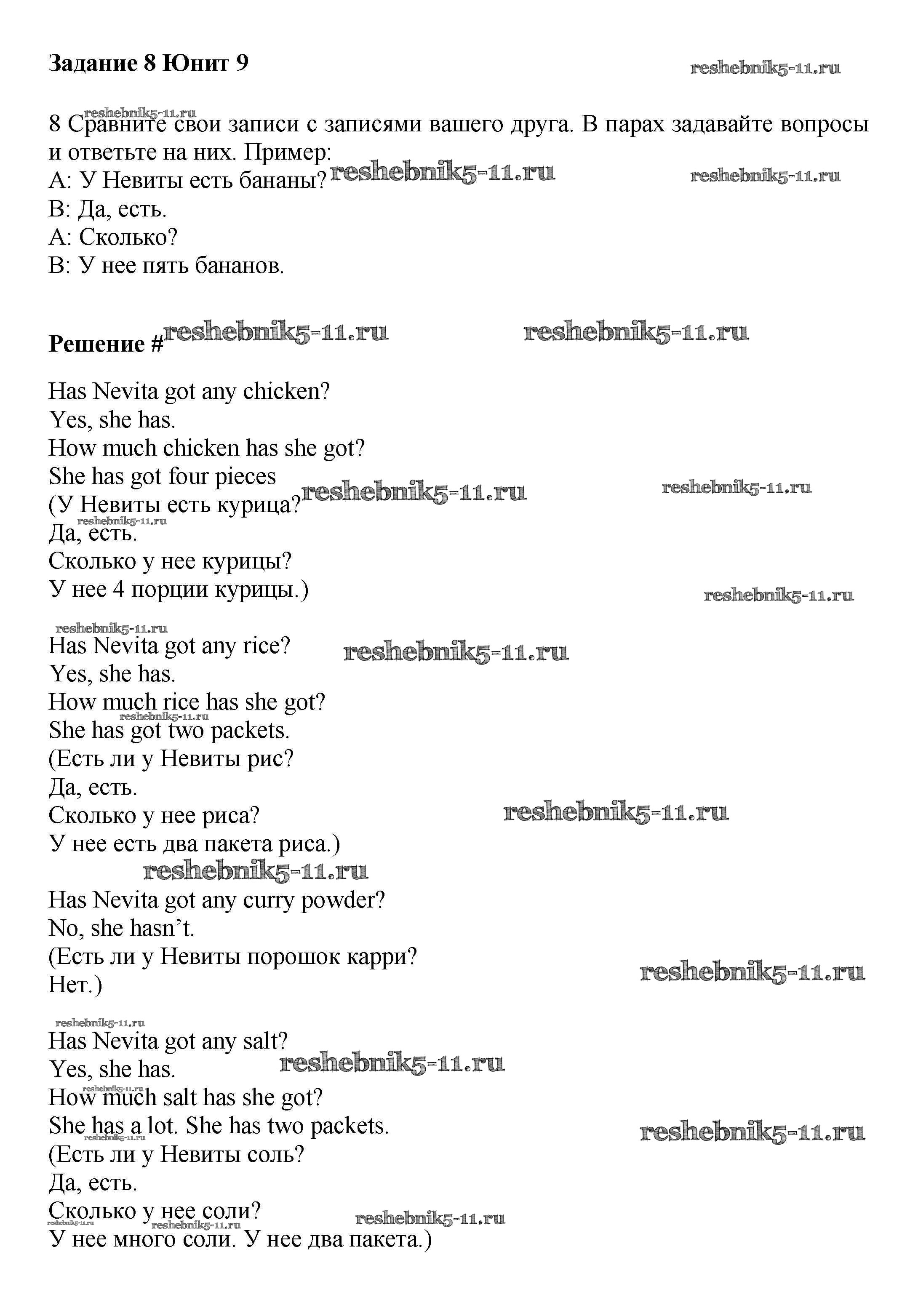Готовая домашняя работа с ответами по Английскому языку за 6 класс Вербицкая, Гаярделли, Редли, Савчук Учебник Forward Часть 1, 2 Вентана-граф 2017 ФГОС - Unit 9. Eating traditions and customs 8