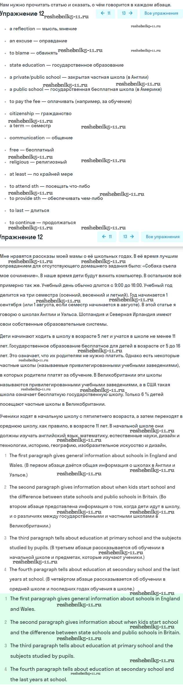 Готовая домашняя работа с ответами по Английскому языку за 6 класс Вербицкая, Гаярделли, Редли, Савчук Учебник Forward Часть 1, 2 Вентана-граф 2017 ФГОС - Unit 10. School subjects 12