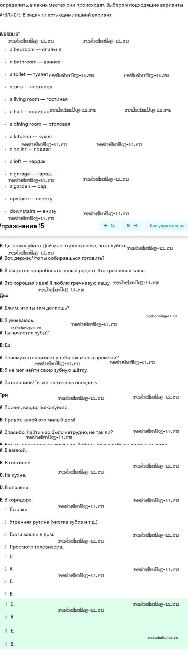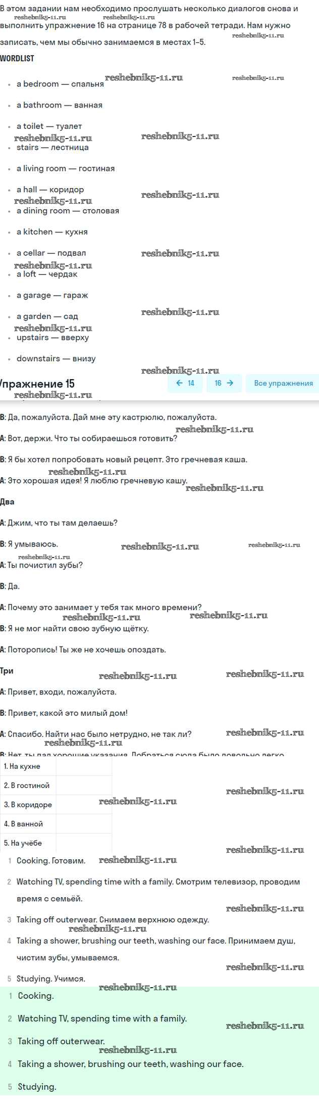 Готовая домашняя работа с ответами по Английскому языку за 6 класс Вербицкая, Гаярделли, Редли, Савчук Учебник Forward Часть 1, 2 Вентана-граф 2017 ФГОС - Unit 11. Homes and houses 15