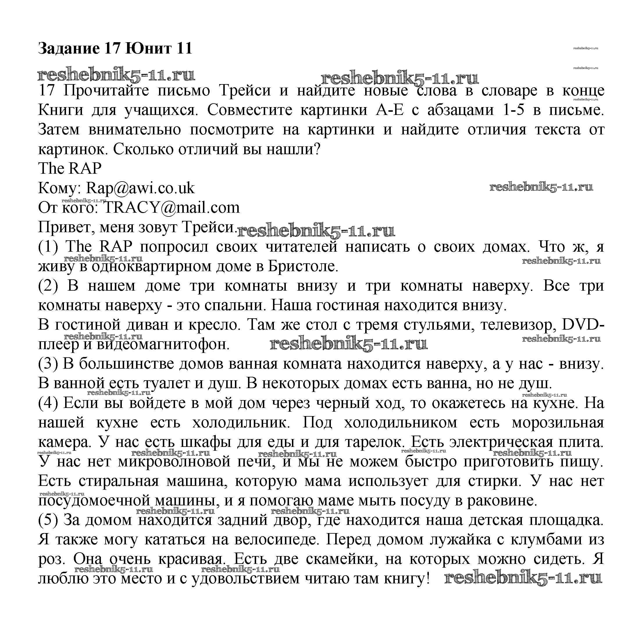 Готовая домашняя работа с ответами по Английскому языку за 6 класс Вербицкая, Гаярделли, Редли, Савчук Учебник Forward Часть 1, 2 Вентана-граф 2017 ФГОС - Unit 11. Homes and houses 17