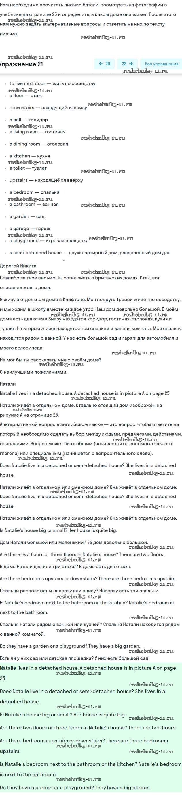 Готовая домашняя работа с ответами по Английскому языку за 6 класс Вербицкая, Гаярделли, Редли, Савчук Учебник Forward Часть 1, 2 Вентана-граф 2017 ФГОС - Unit 11. Homes and houses 21