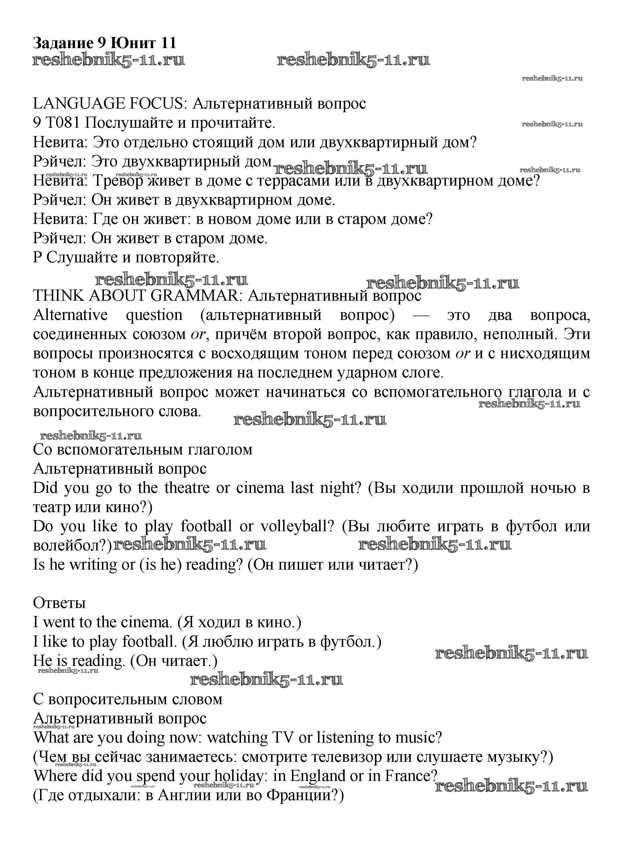 Готовая домашняя работа с ответами по Английскому языку за 6 класс Вербицкая, Гаярделли, Редли, Савчук Учебник Forward Часть 1, 2 Вентана-граф 2017 ФГОС - Unit 11. Homes and houses 9