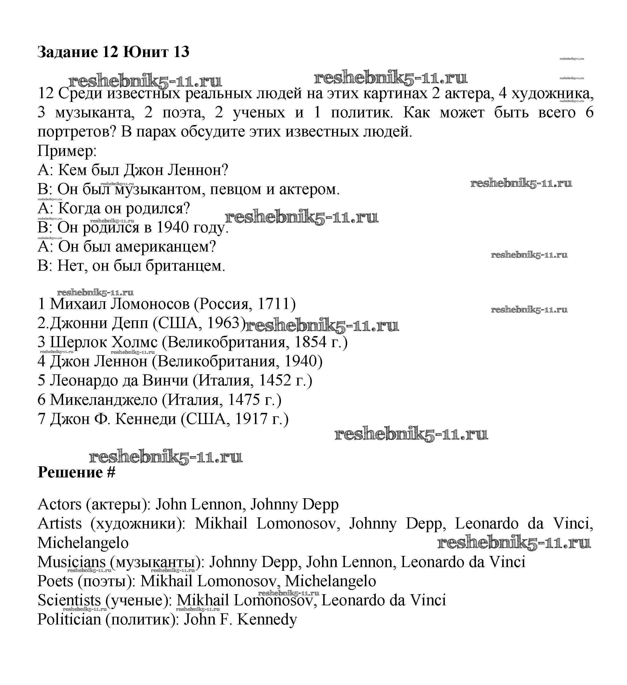 Готовая домашняя работа с ответами по Английскому языку за 6 класс Вербицкая, Гаярделли, Редли, Савчук Учебник Forward Часть 1, 2 Вентана-граф 2017 ФГОС - Unit 13. Famous people 12
