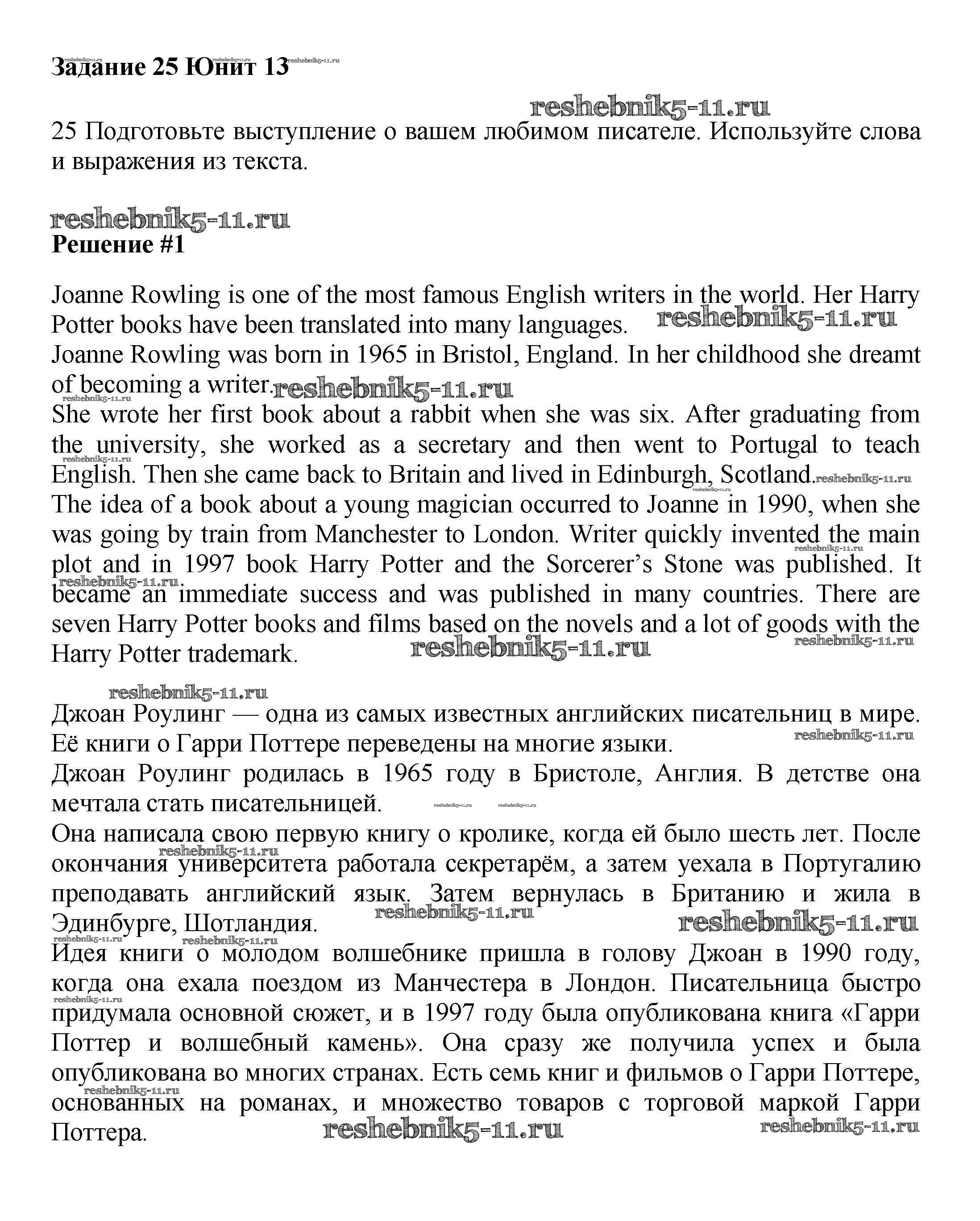 Готовая домашняя работа с ответами по Английскому языку за 6 класс Вербицкая, Гаярделли, Редли, Савчук Учебник Forward Часть 1, 2 Вентана-граф 2017 ФГОС - Unit 13. Famous people 25