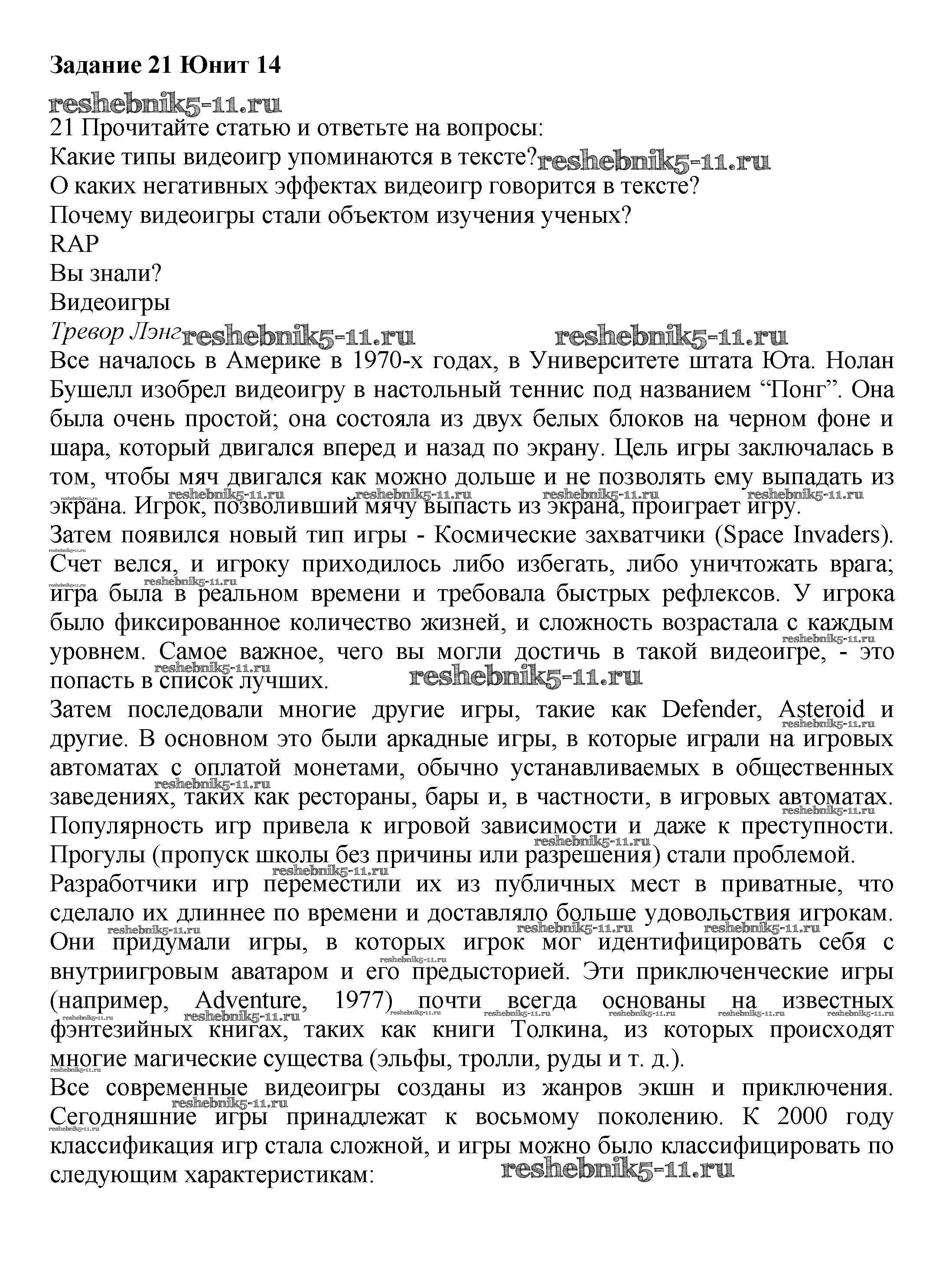 Готовая домашняя работа с ответами по Английскому языку за 6 класс Вербицкая, Гаярделли, Редли, Савчук Учебник Forward Часть 1, 2 Вентана-граф 2017 ФГОС - Unit 14. The world of computers 21