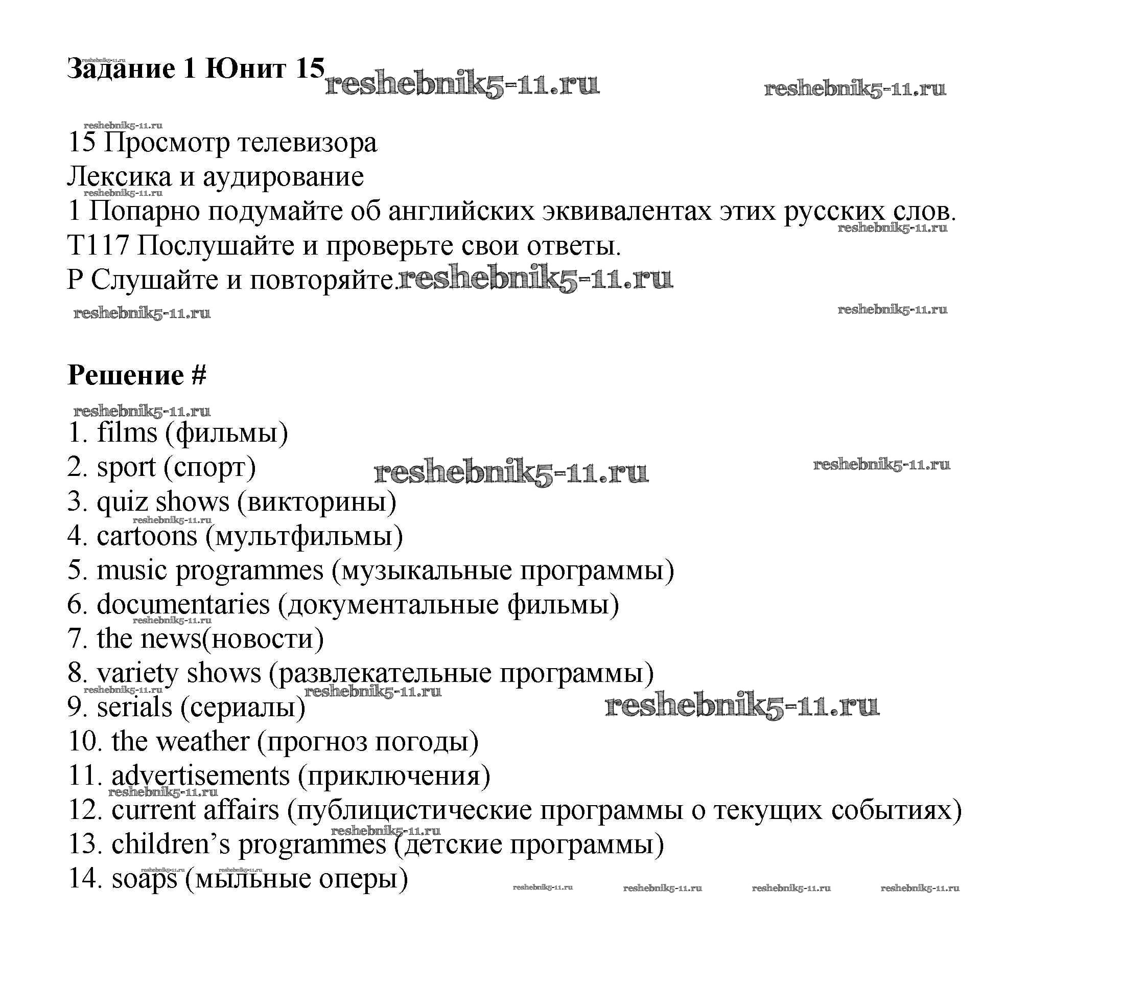 Готовая домашняя работа с ответами по Английскому языку за 6 класс Вербицкая, Гаярделли, Редли, Савчук Учебник Forward Часть 1, 2 Вентана-граф 2017 ФГОС - Unit 15. TV watching 1