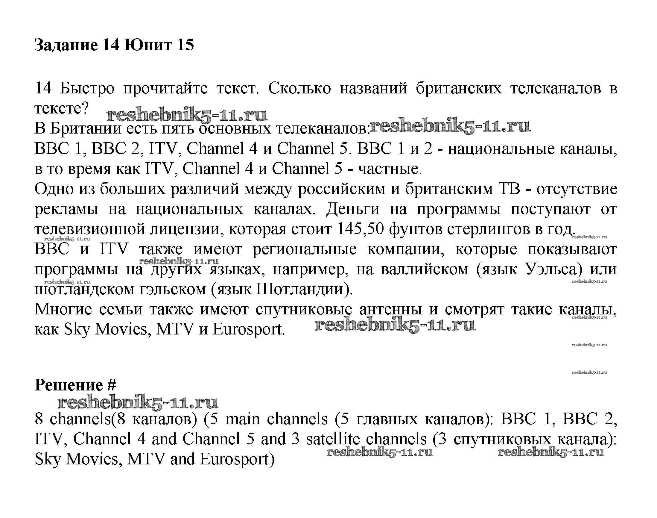 Готовая домашняя работа с ответами по Английскому языку за 6 класс Вербицкая, Гаярделли, Редли, Савчук Учебник Forward Часть 1, 2 Вентана-граф 2017 ФГОС - Unit 15. TV watching 14
