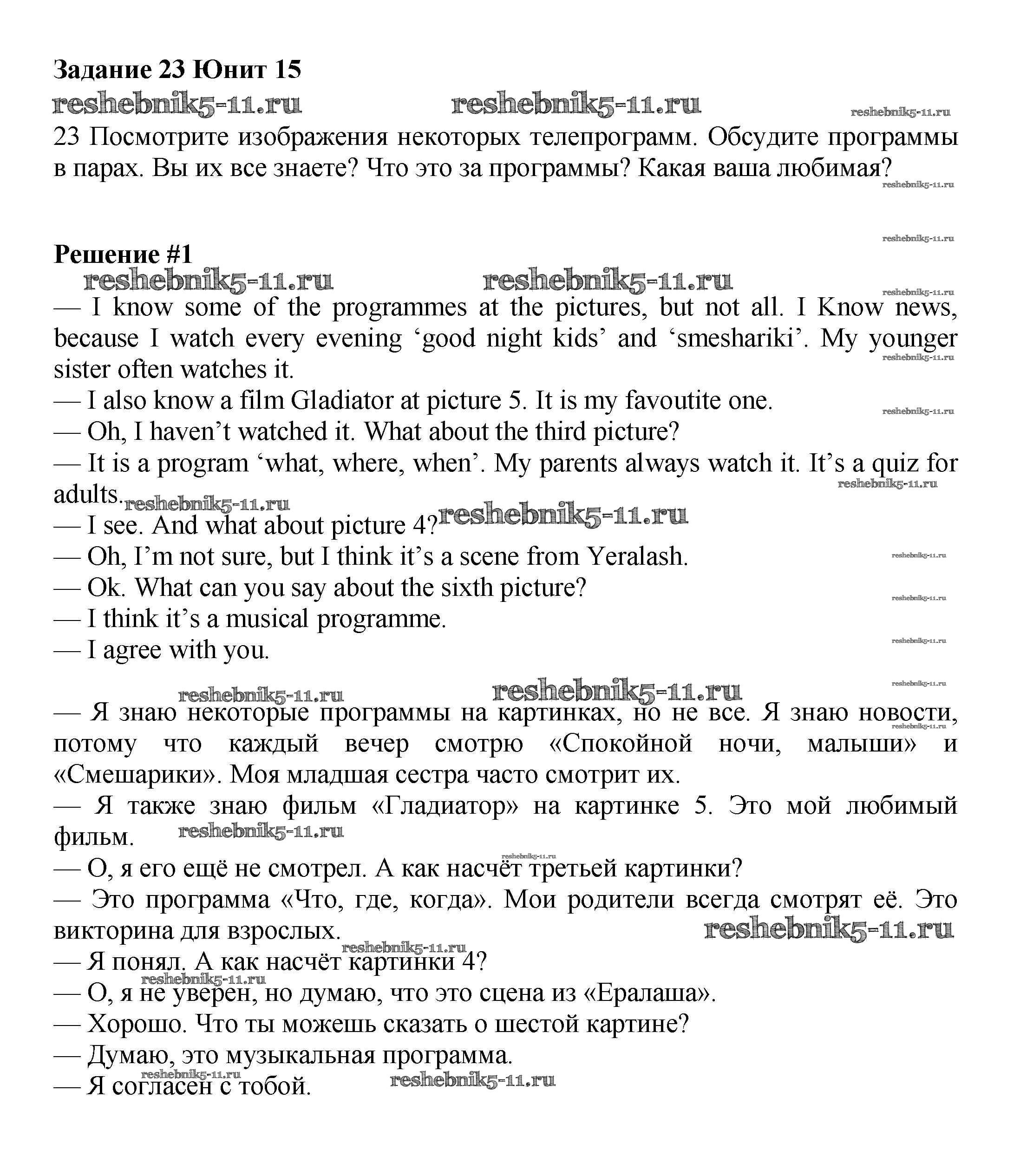 Готовая домашняя работа с ответами по Английскому языку за 6 класс Вербицкая, Гаярделли, Редли, Савчук Учебник Forward Часть 1, 2 Вентана-граф 2017 ФГОС - Unit 15. TV watching 23