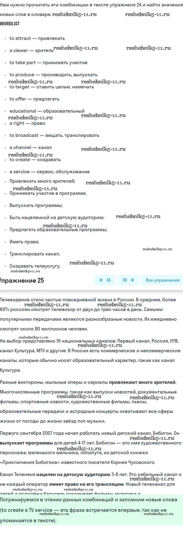 Готовая домашняя работа с ответами по Английскому языку за 6 класс Вербицкая, Гаярделли, Редли, Савчук Учебник Forward Часть 1, 2 Вентана-граф 2017 ФГОС - Unit 15. TV watching 25