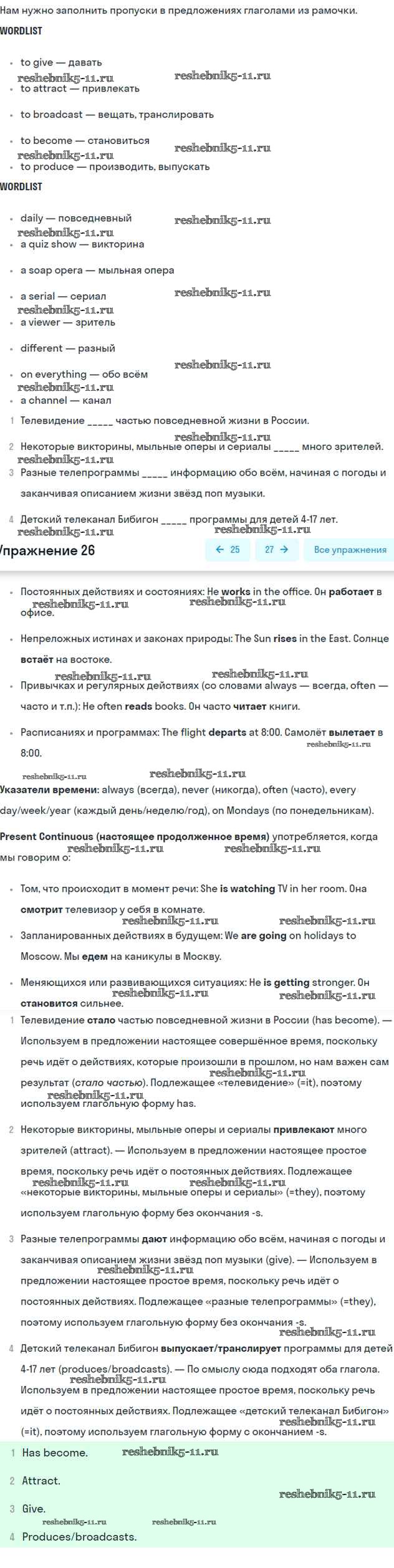 Готовая домашняя работа с ответами по Английскому языку за 6 класс Вербицкая, Гаярделли, Редли, Савчук Учебник Forward Часть 1, 2 Вентана-граф 2017 ФГОС - Unit 15. TV watching 26