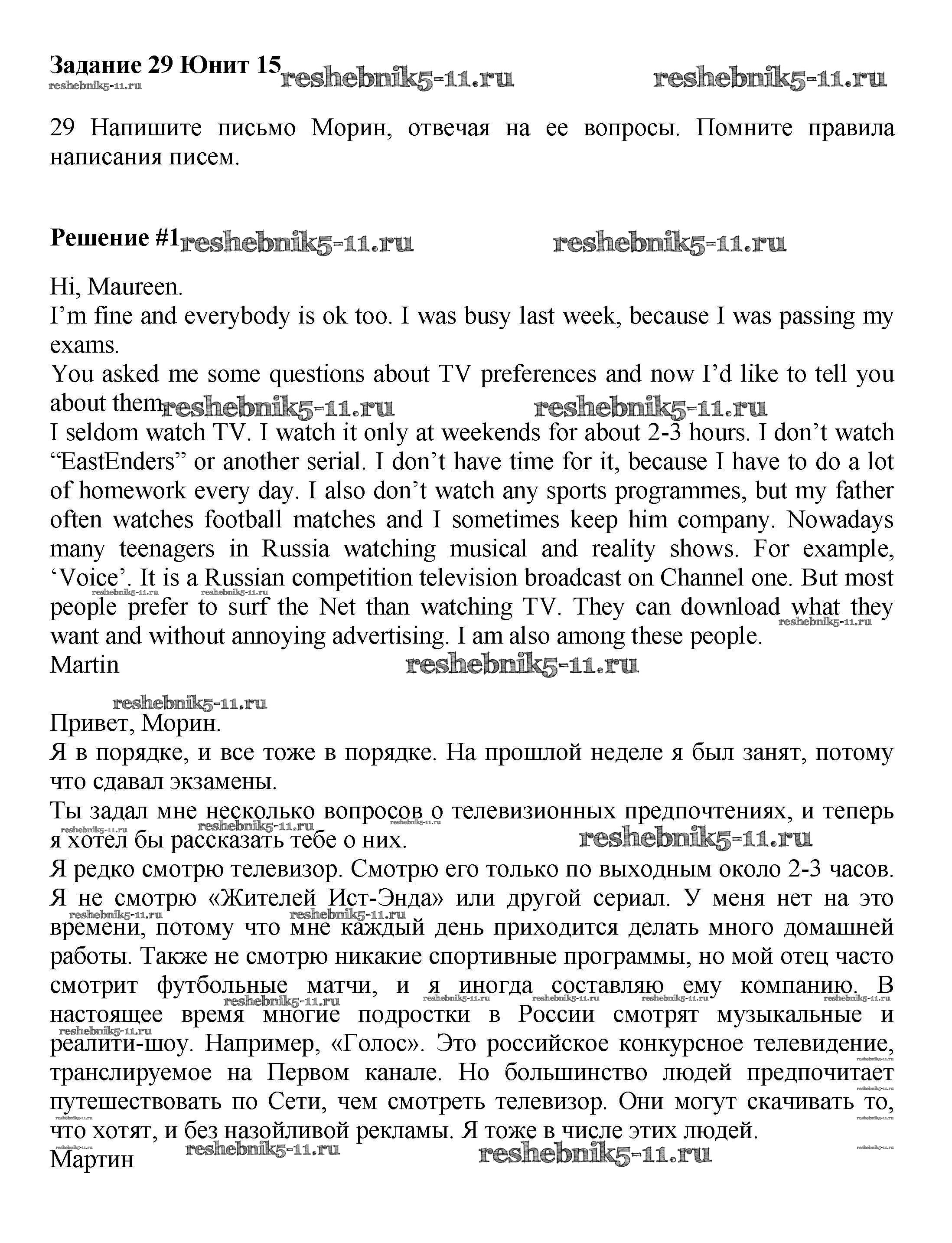 Готовая домашняя работа с ответами по Английскому языку за 6 класс Вербицкая, Гаярделли, Редли, Савчук Учебник Forward Часть 1, 2 Вентана-граф 2017 ФГОС - Unit 15. TV watching 29
