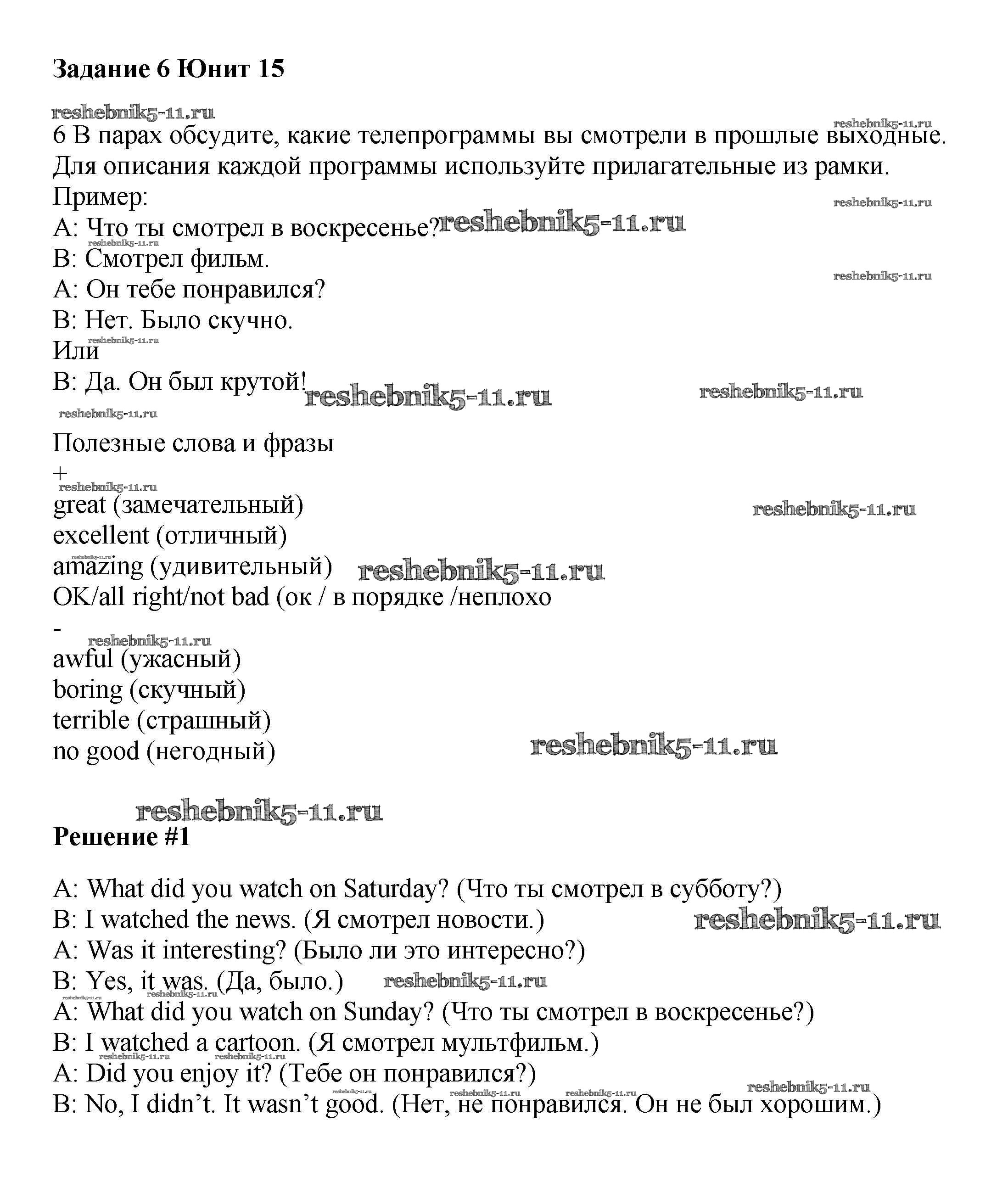 Готовая домашняя работа с ответами по Английскому языку за 6 класс Вербицкая, Гаярделли, Редли, Савчук Учебник Forward Часть 1, 2 Вентана-граф 2017 ФГОС - Unit 15. TV watching 6