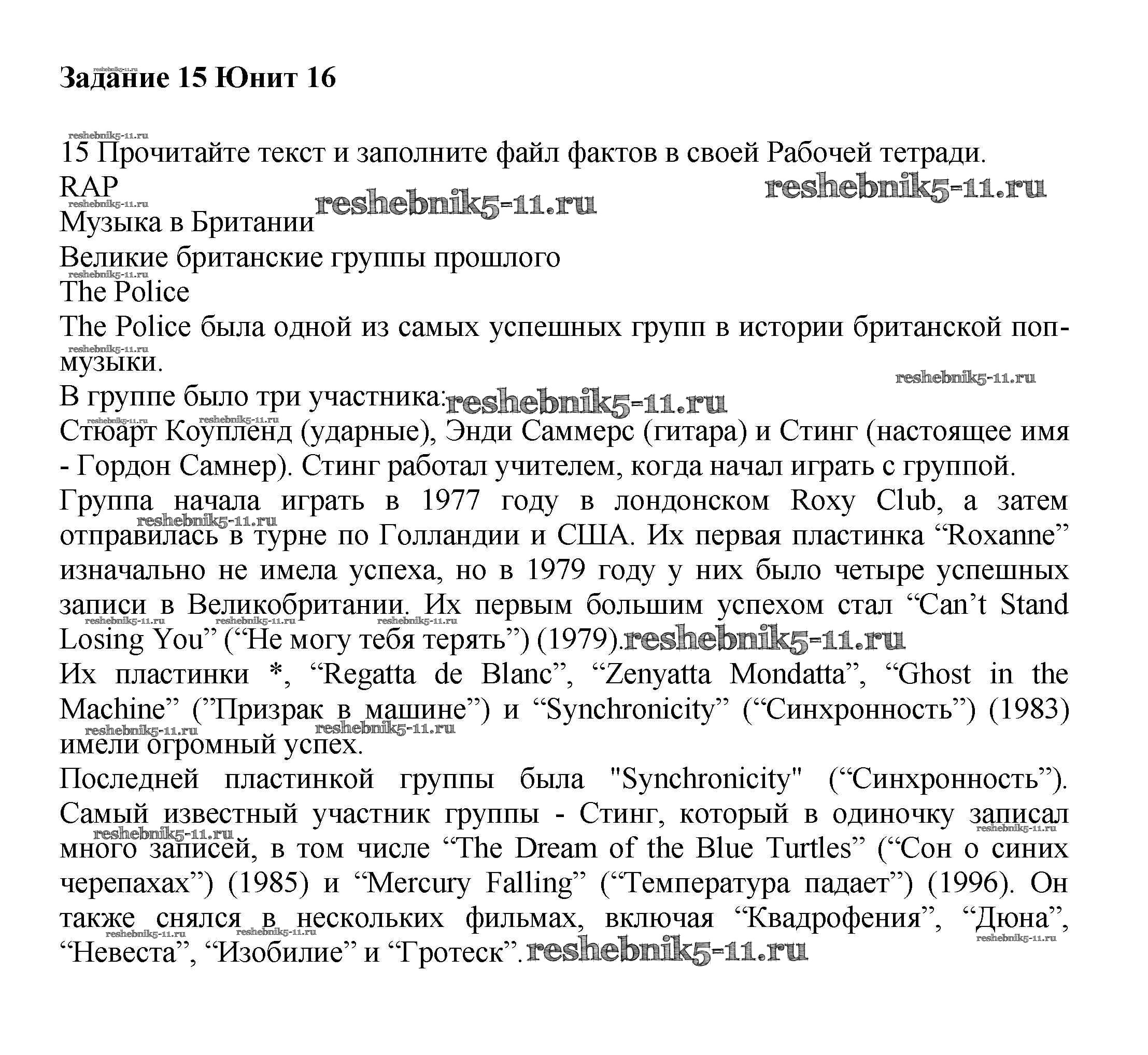 Готовая домашняя работа с ответами по Английскому языку за 6 класс Вербицкая, Гаярделли, Редли, Савчук Учебник Forward Часть 1, 2 Вентана-граф 2017 ФГОС - Unit 16. The world of music 15