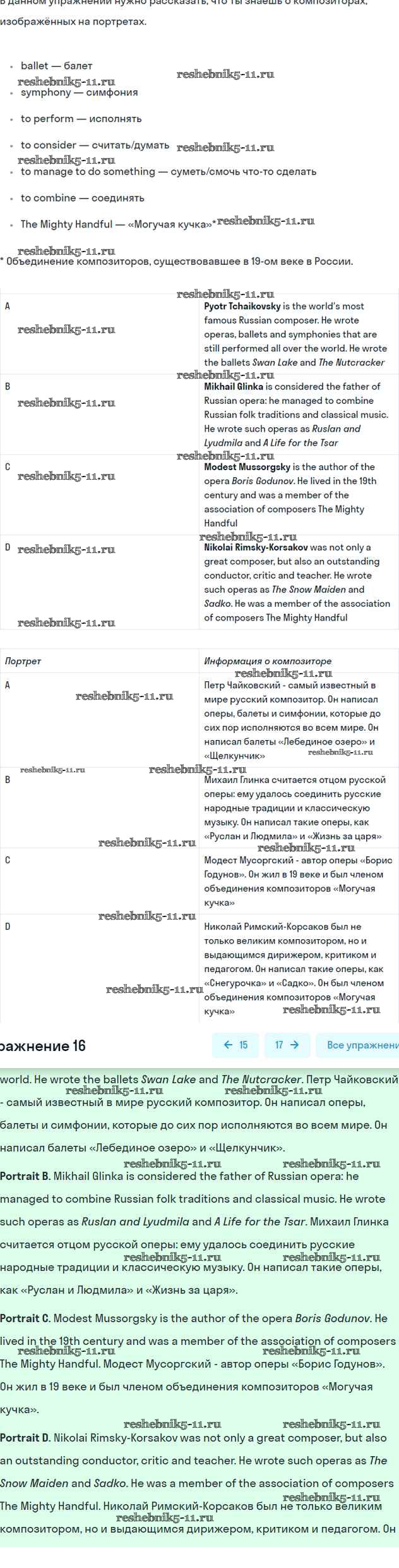 Готовая домашняя работа с ответами по Английскому языку за 6 класс Вербицкая, Гаярделли, Редли, Савчук Учебник Forward Часть 1, 2 Вентана-граф 2017 ФГОС - Unit 16. The world of music 16