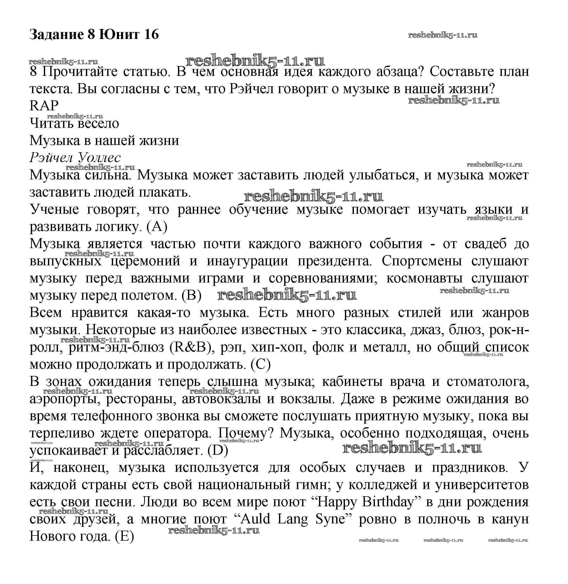 Готовая домашняя работа с ответами по Английскому языку за 6 класс Вербицкая, Гаярделли, Редли, Савчук Учебник Forward Часть 1, 2 Вентана-граф 2017 ФГОС - Unit 16. The world of music 8