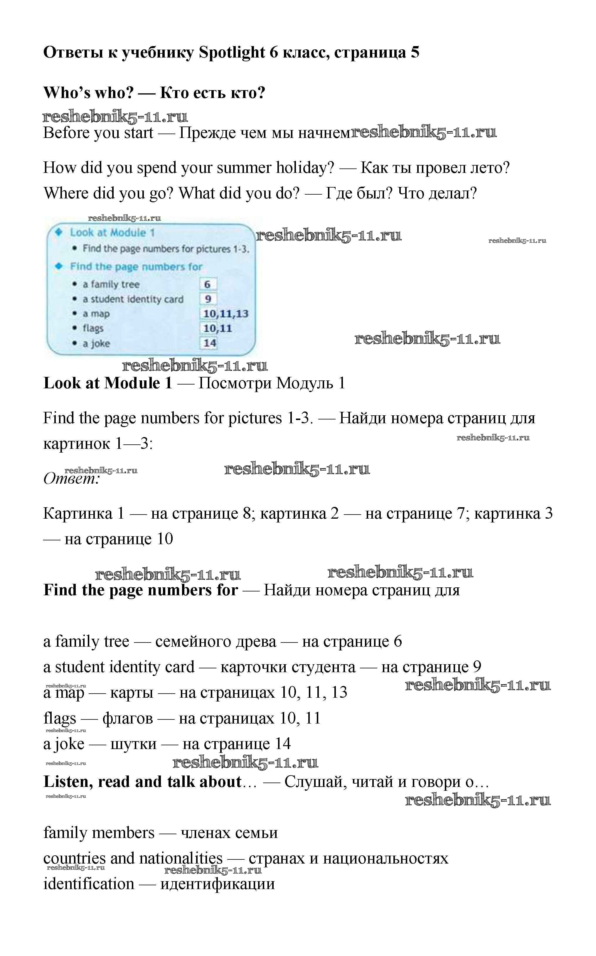 Готовая домашняя работа с ответами по Английскому языку за 6 класс Ваулина, Дули, Эванс, Подоляко Учебник Spotlight Просвещение 2017 ФГОС - Module 1. Who's who? Страницы 5