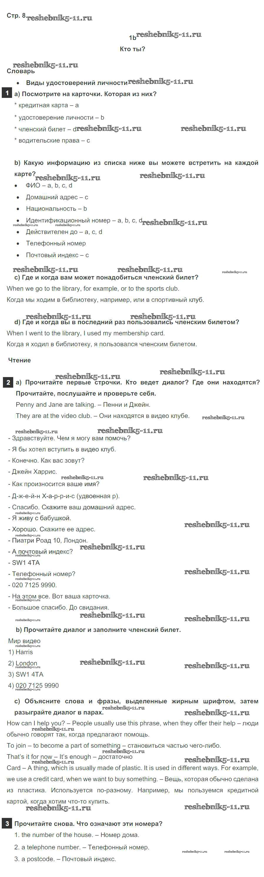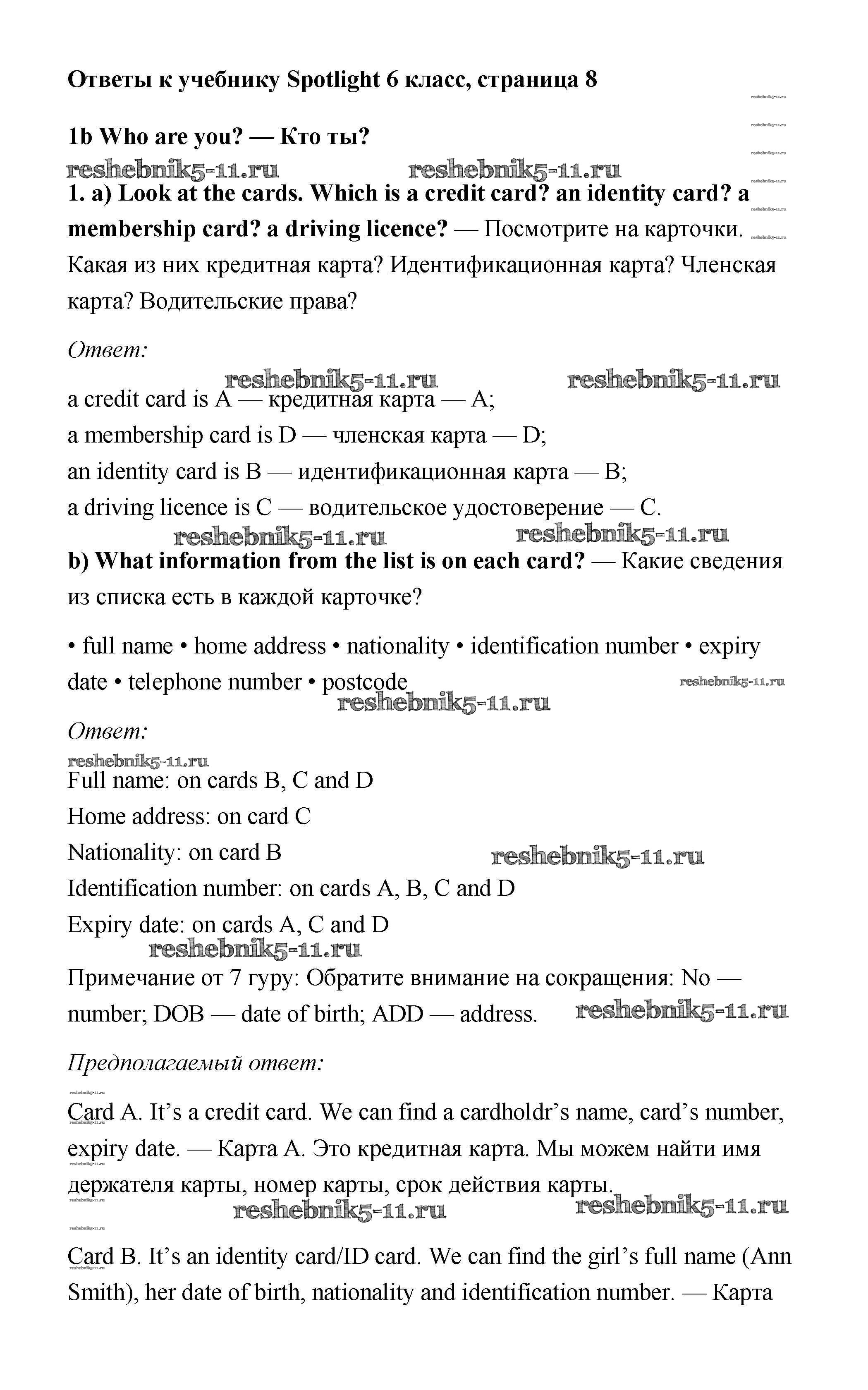 Готовая домашняя работа с ответами по Английскому языку за 6 класс Ваулина, Дули, Эванс, Подоляко Учебник Spotlight Просвещение 2017 ФГОС - Module 1. Who's who? Страницы 8