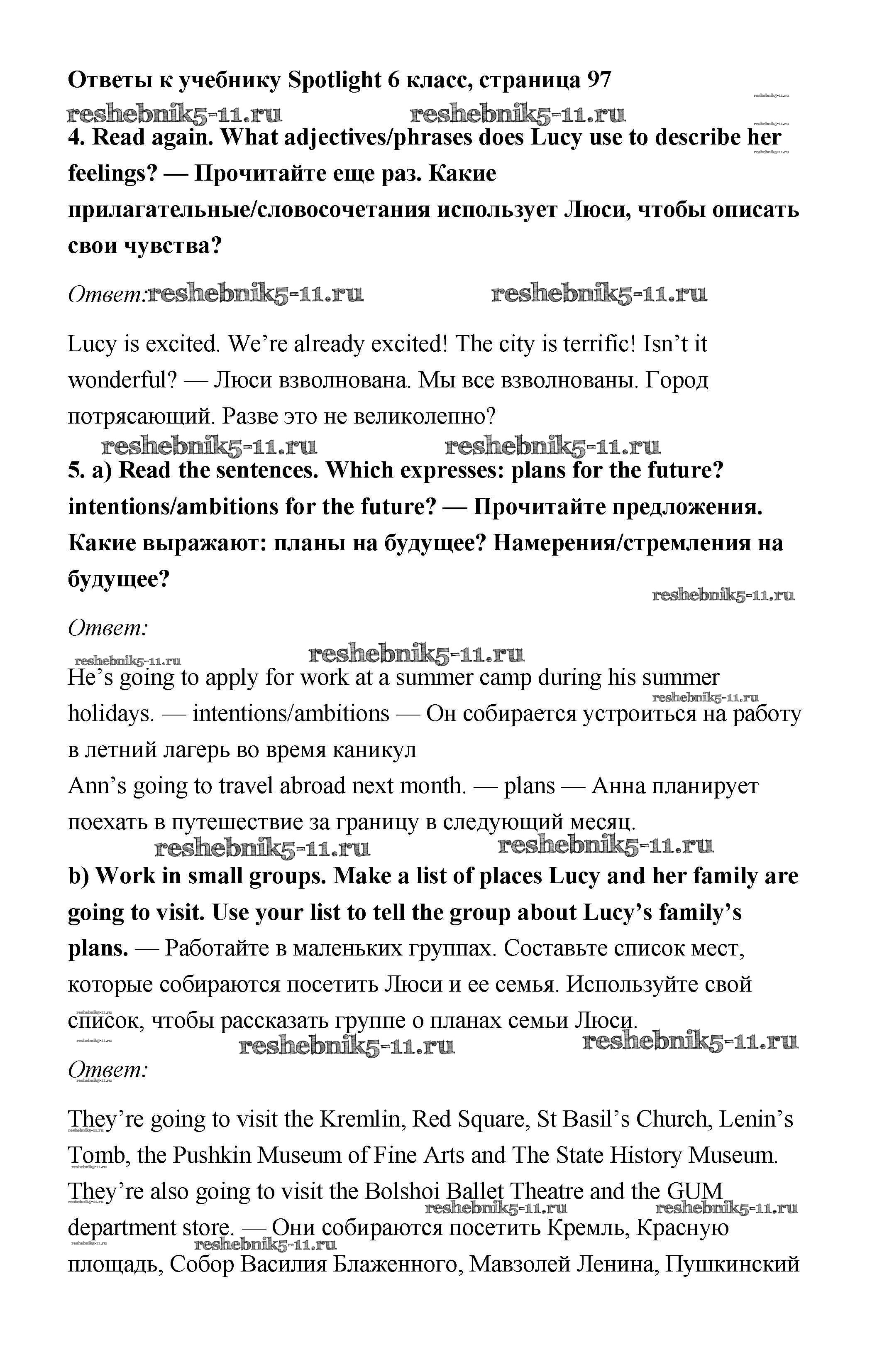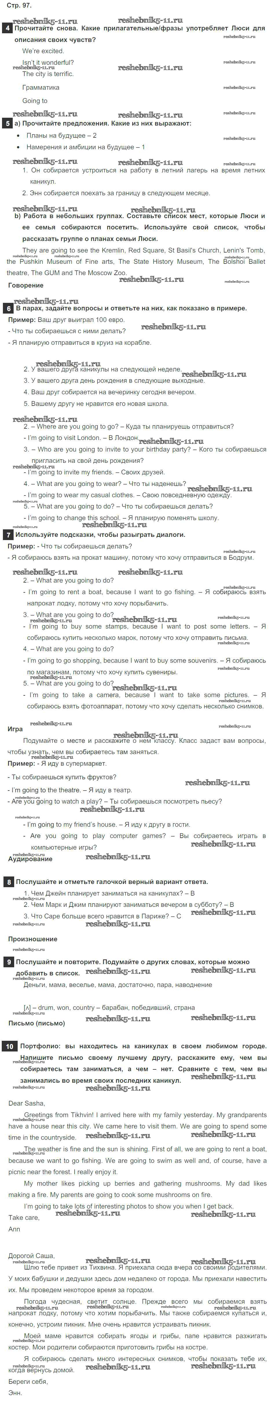Готовая домашняя работа с ответами по Английскому языку за 6 класс Ваулина, Дули, Эванс, Подоляко Учебник Spotlight Просвещение 2017 ФГОС - Module 10. Holiday Time. Страницы 97