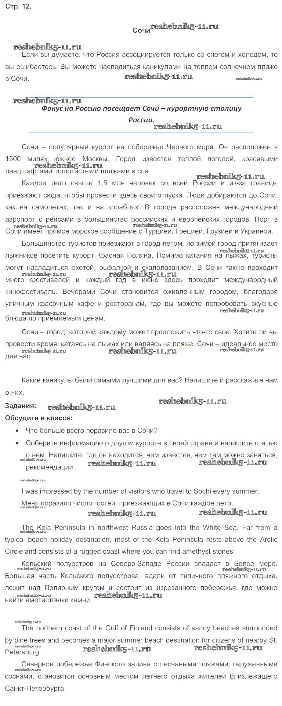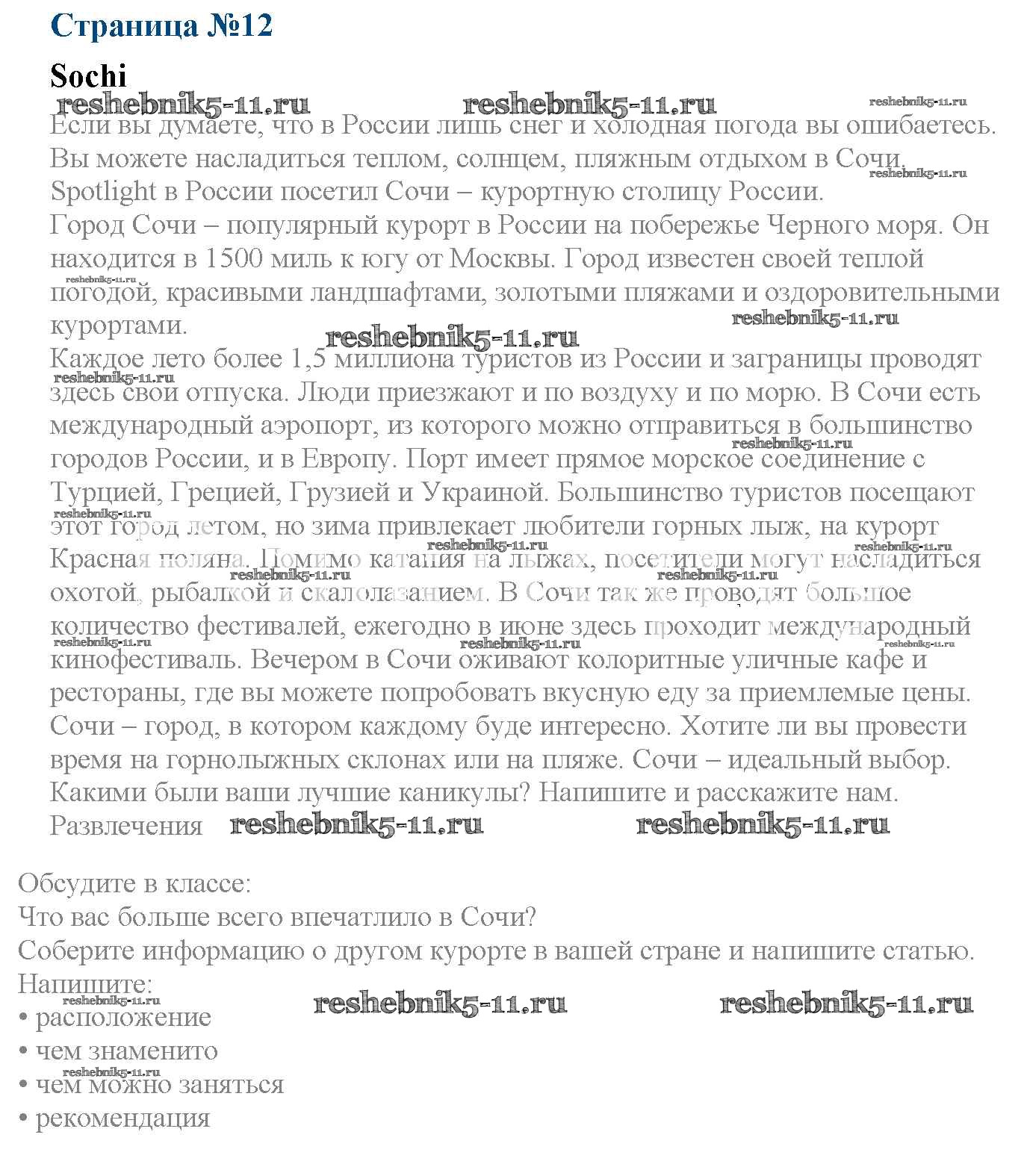 Готовая домашняя работа с ответами по Английскому языку за 6 класс Ваулина, Дули, Эванс, Подоляко Учебник Spotlight Просвещение 2017 ФГОС - Spotlight on Russia. Страницы 12