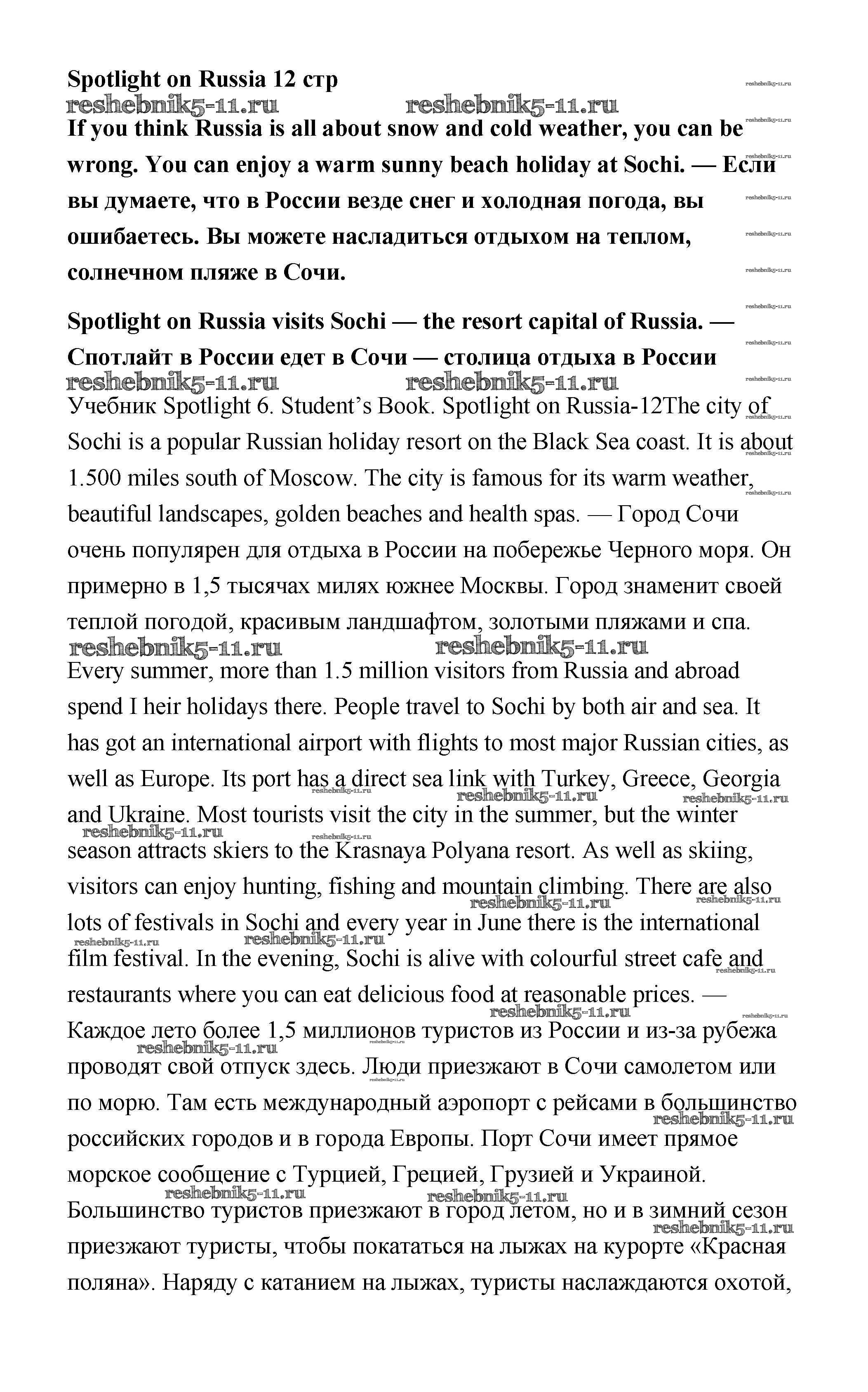 Английский язык за 6 класс Ваулина Учебник Spotlight Просвещение spotlight on Russia. страница 12