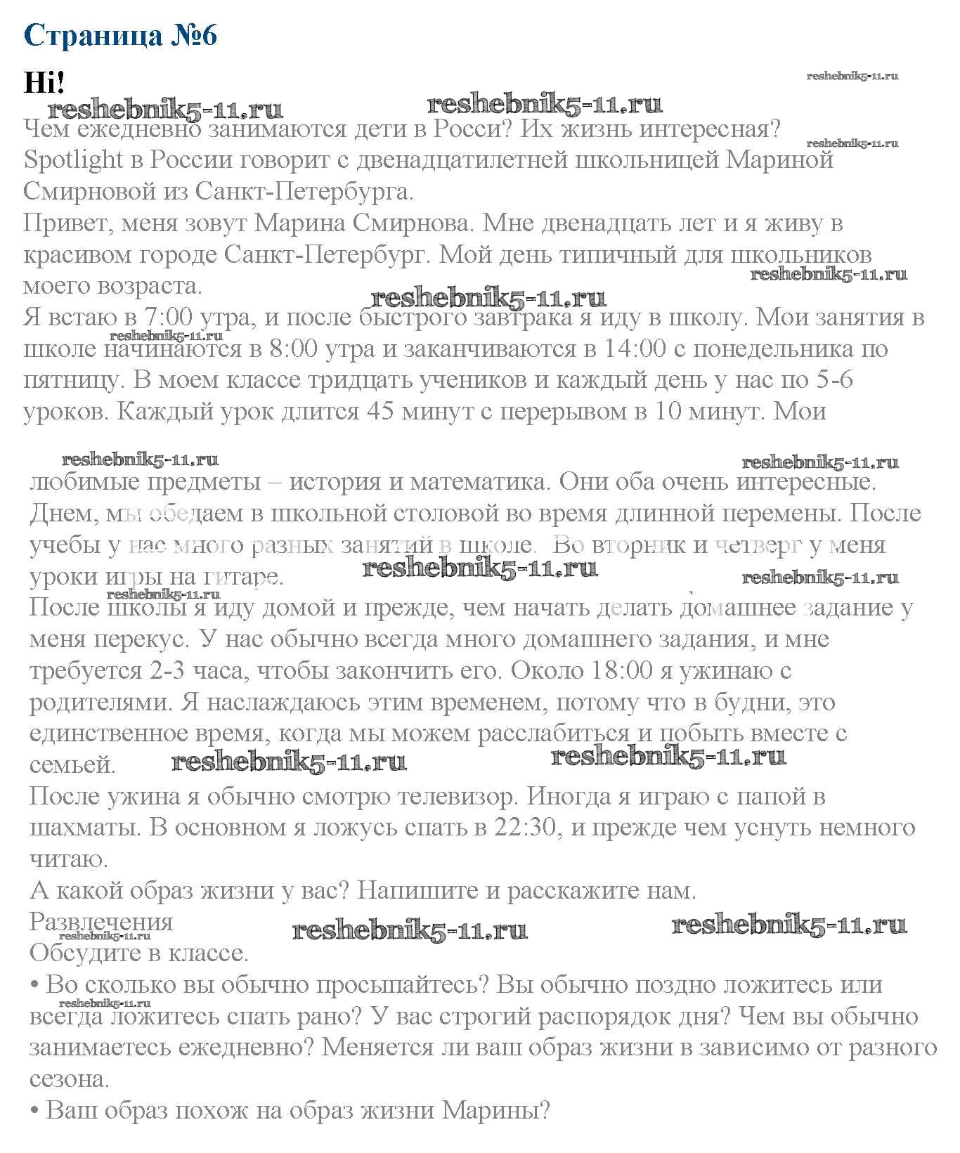 Английский язык за 6 класс Ваулина Учебник Spotlight Просвещение spotlight on Russia. страница 6