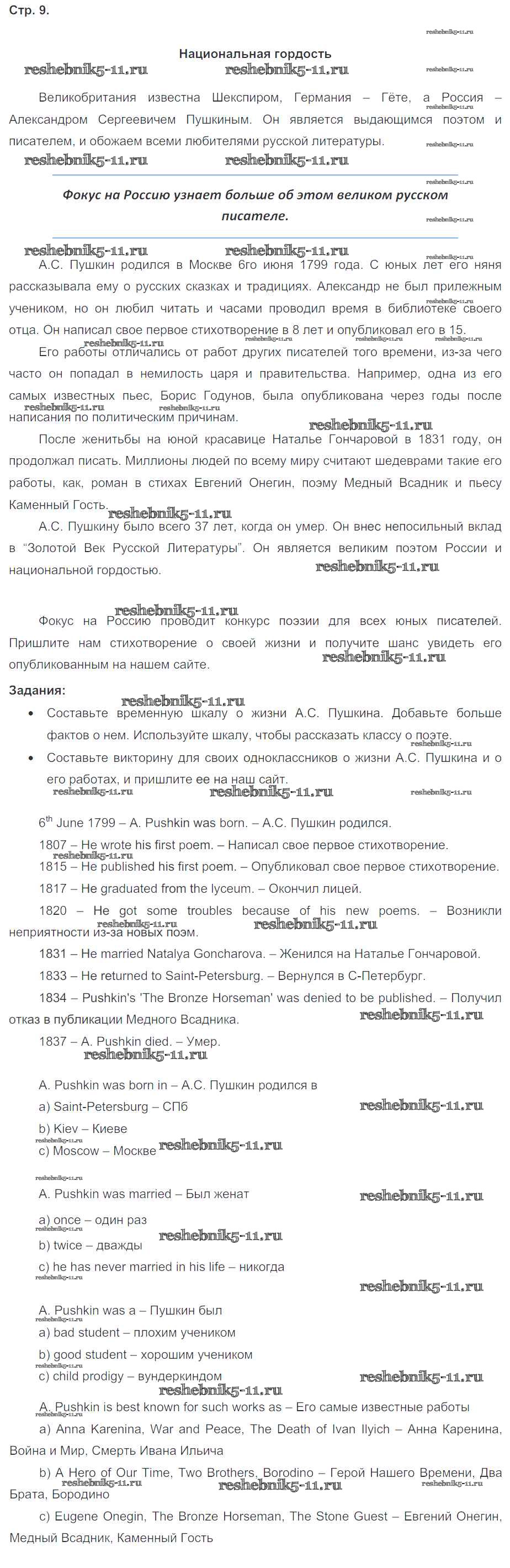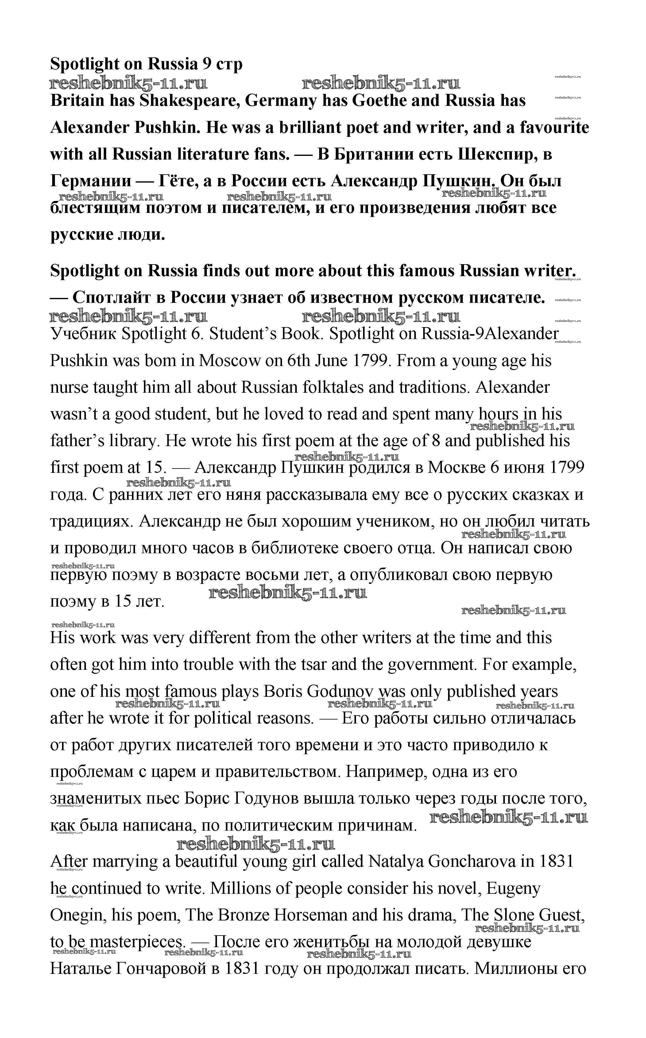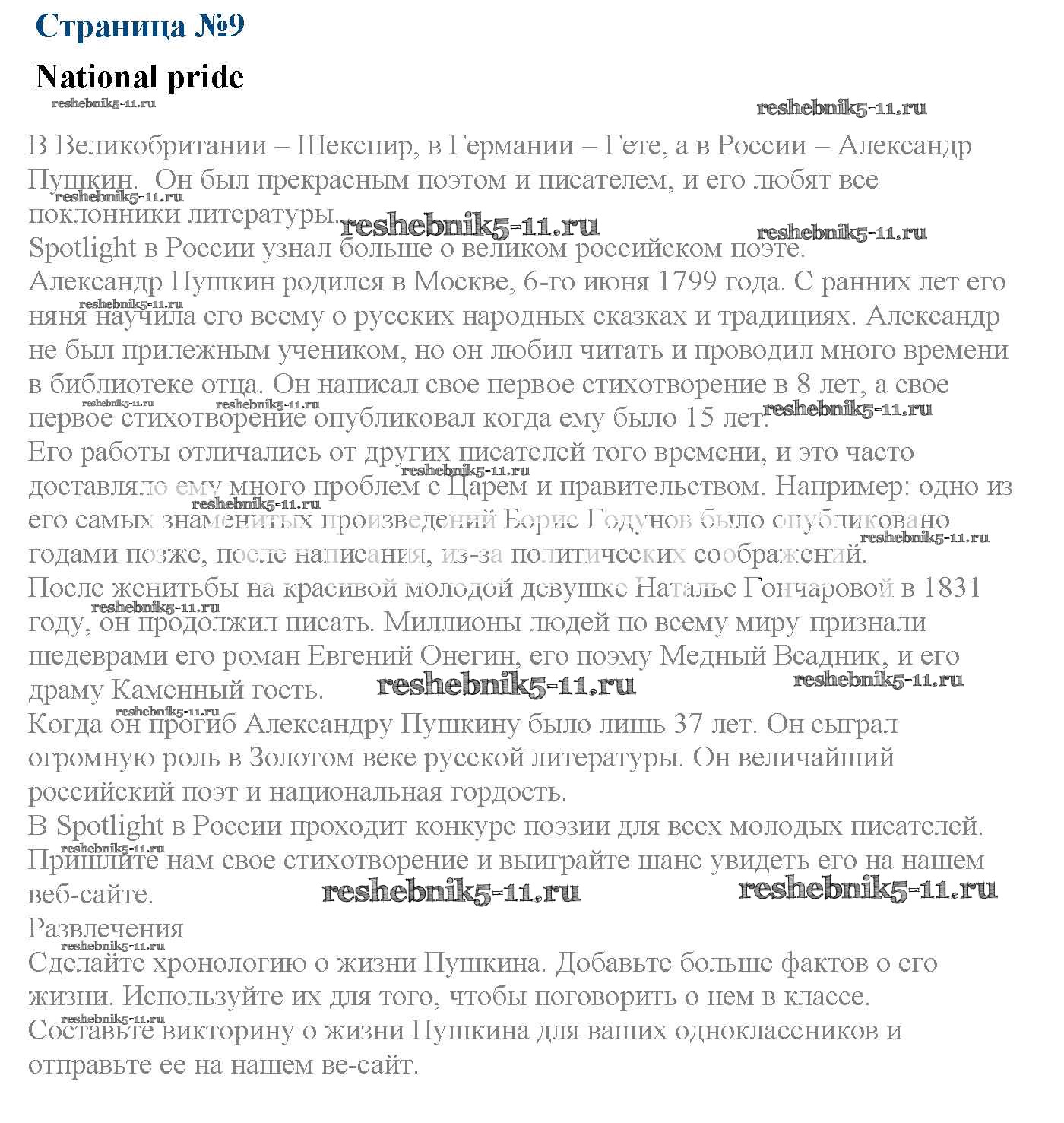 Готовая домашняя работа с ответами по Английскому языку за 6 класс Ваулина, Дули, Эванс, Подоляко Учебник Spotlight Просвещение 2017 ФГОС - Spotlight on Russia. Страницы 9