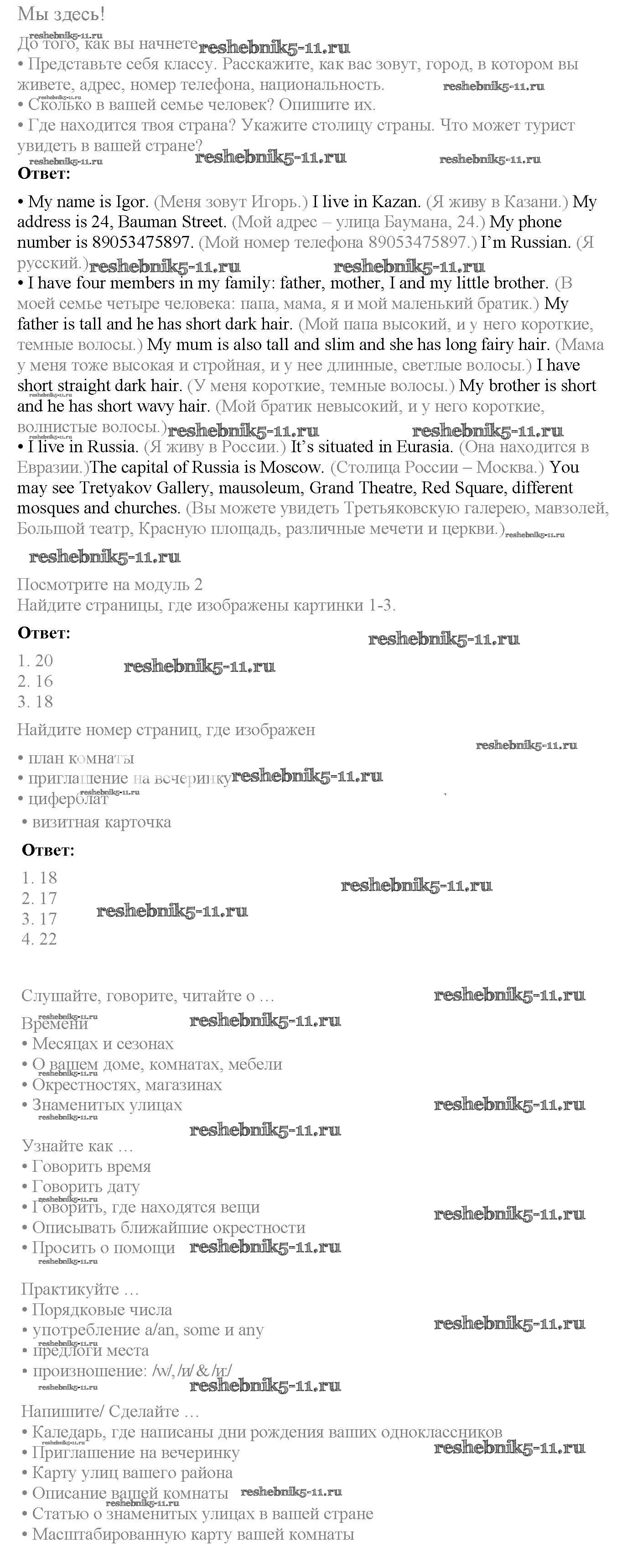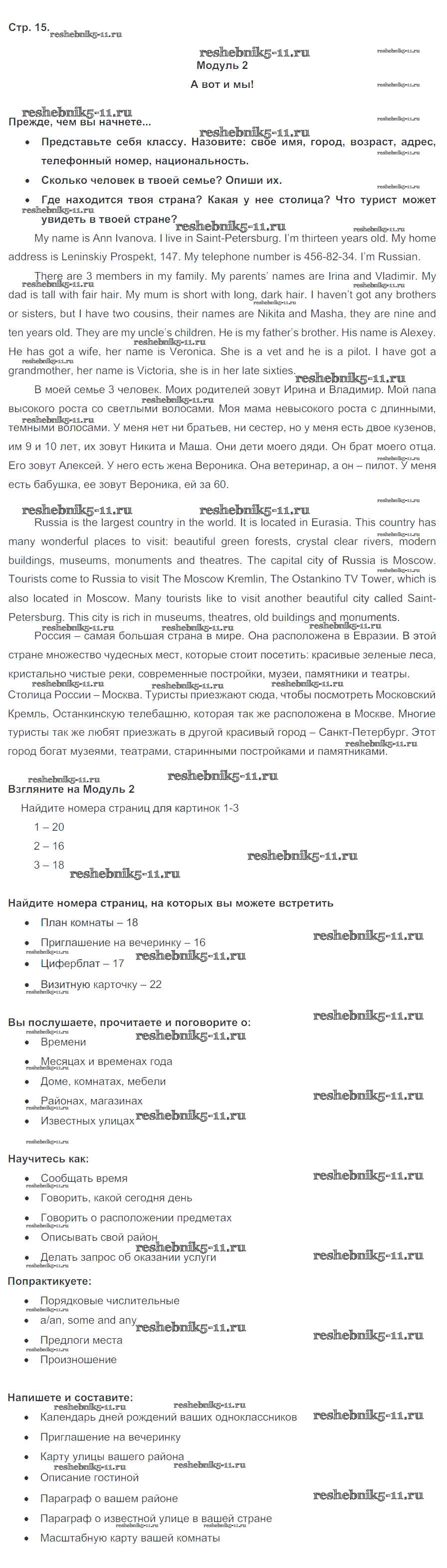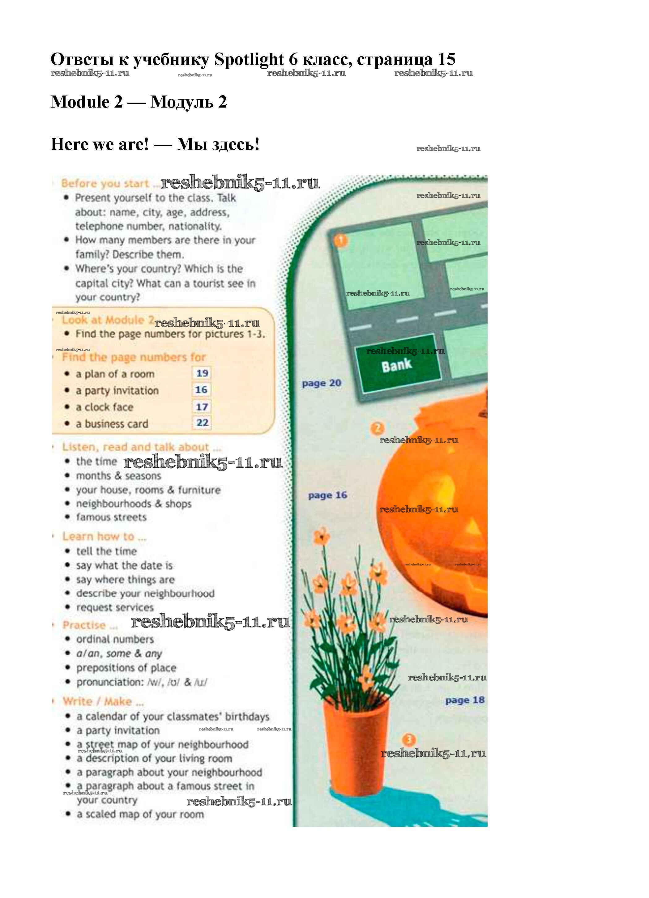 Готовая домашняя работа с ответами по Английскому языку за 6 класс Ваулина, Дули, Эванс, Подоляко Учебник Spotlight Просвещение 2017 ФГОС - Module 2. Here we are! Страницы 15