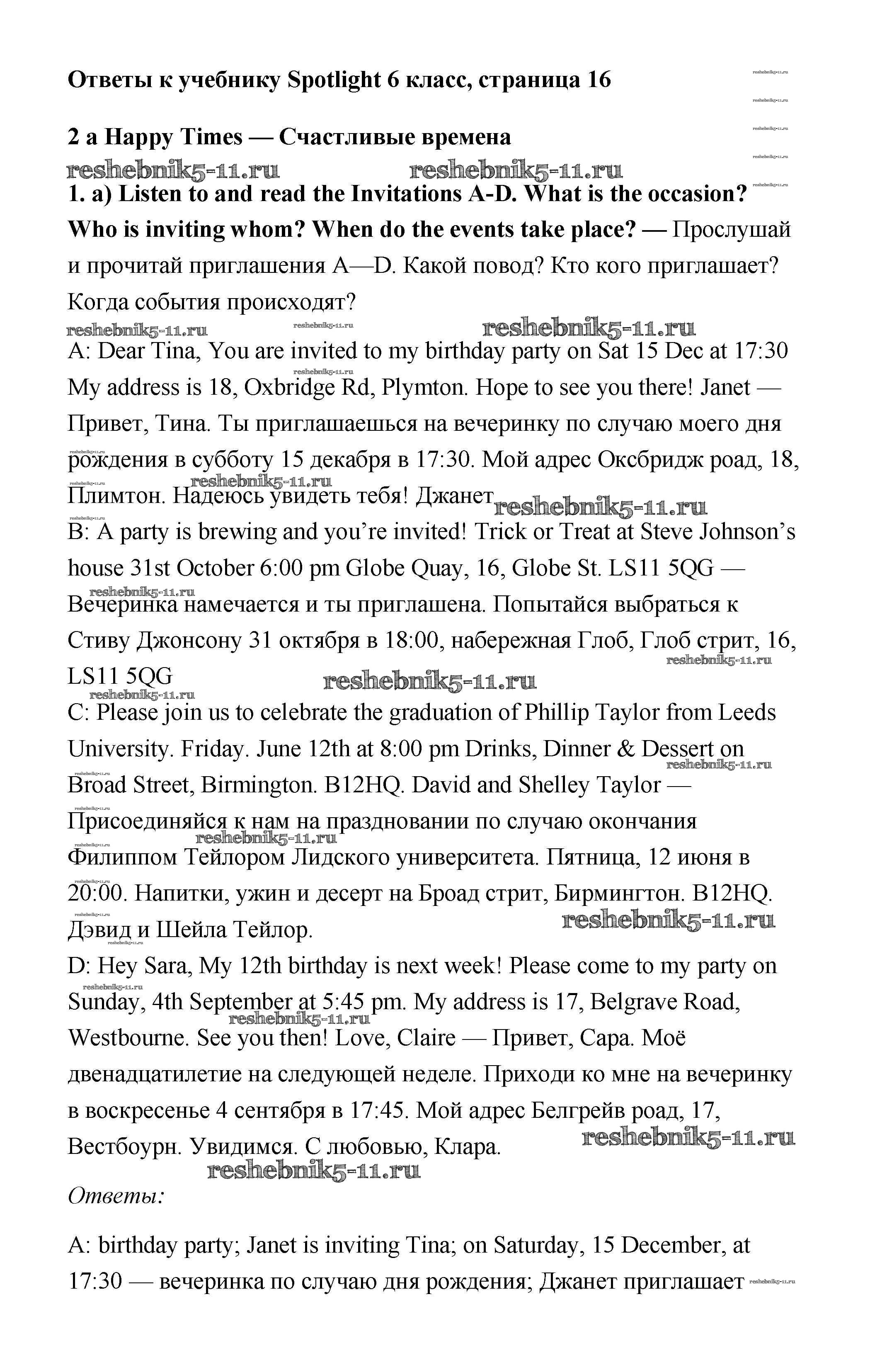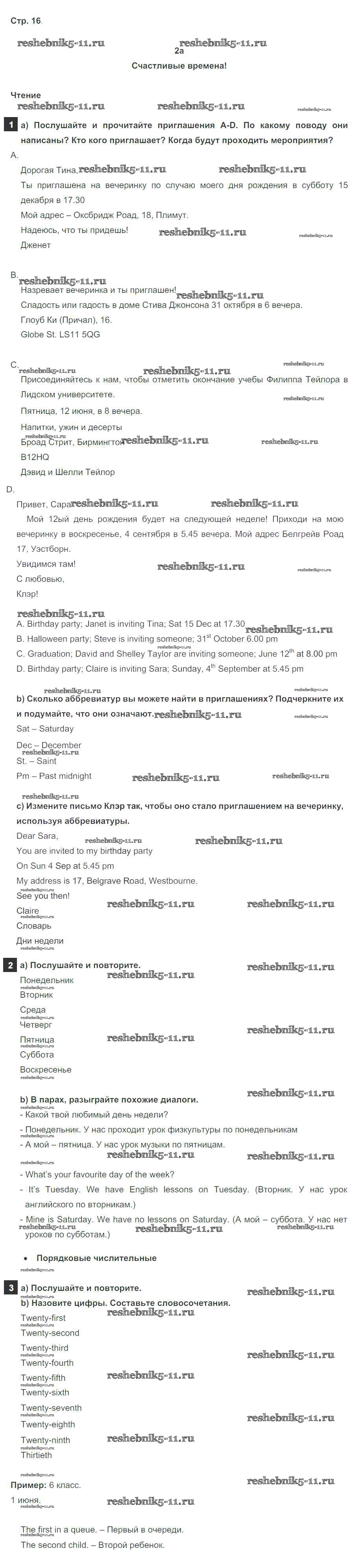 Готовая домашняя работа с ответами по Английскому языку за 6 класс Ваулина, Дули, Эванс, Подоляко Учебник Spotlight Просвещение 2017 ФГОС - Module 2. Here we are! Страницы 16