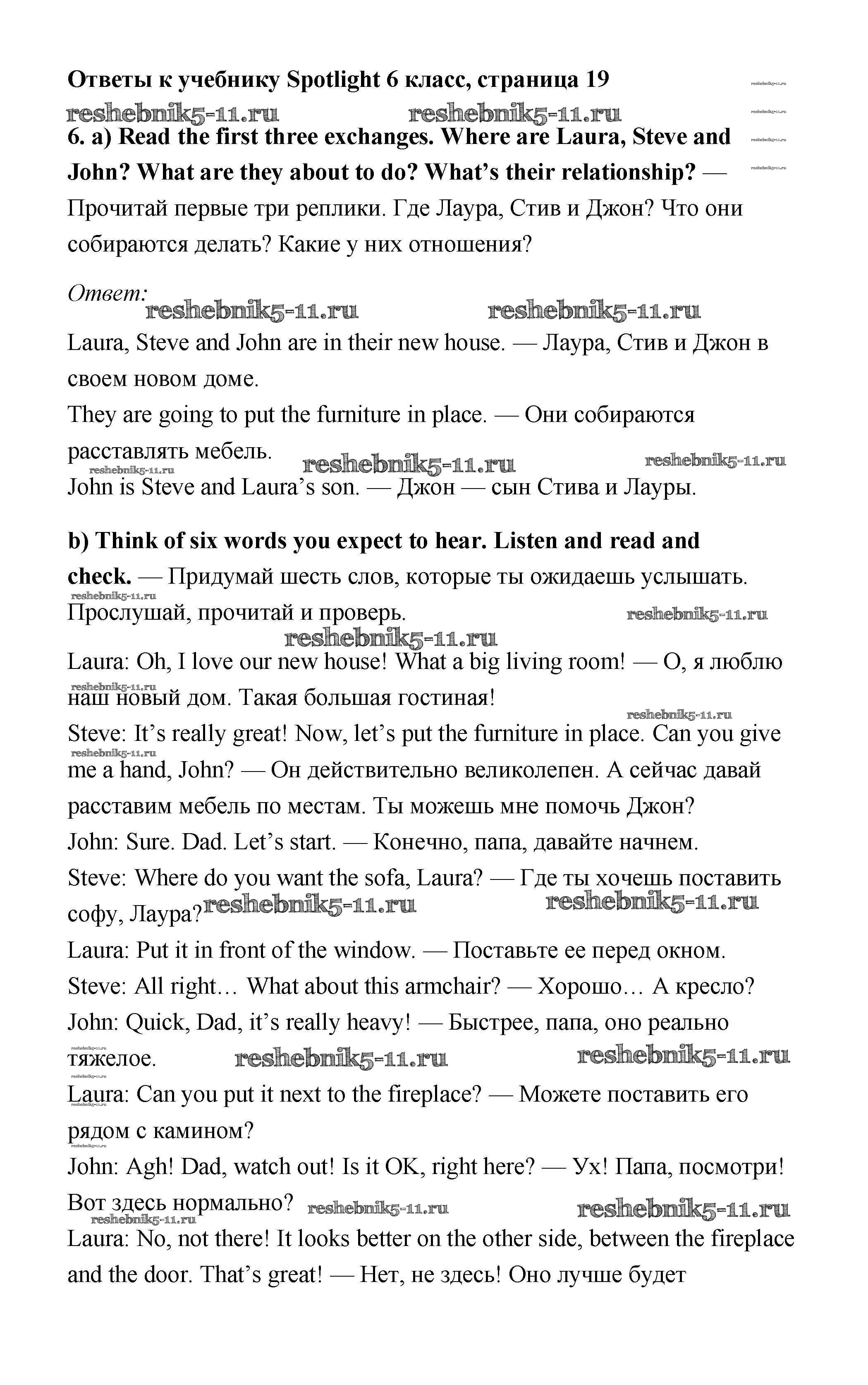 Готовая домашняя работа с ответами по Английскому языку за 6 класс Ваулина, Дули, Эванс, Подоляко Учебник Spotlight Просвещение 2017 ФГОС - Module 2. Here we are! Страницы 19