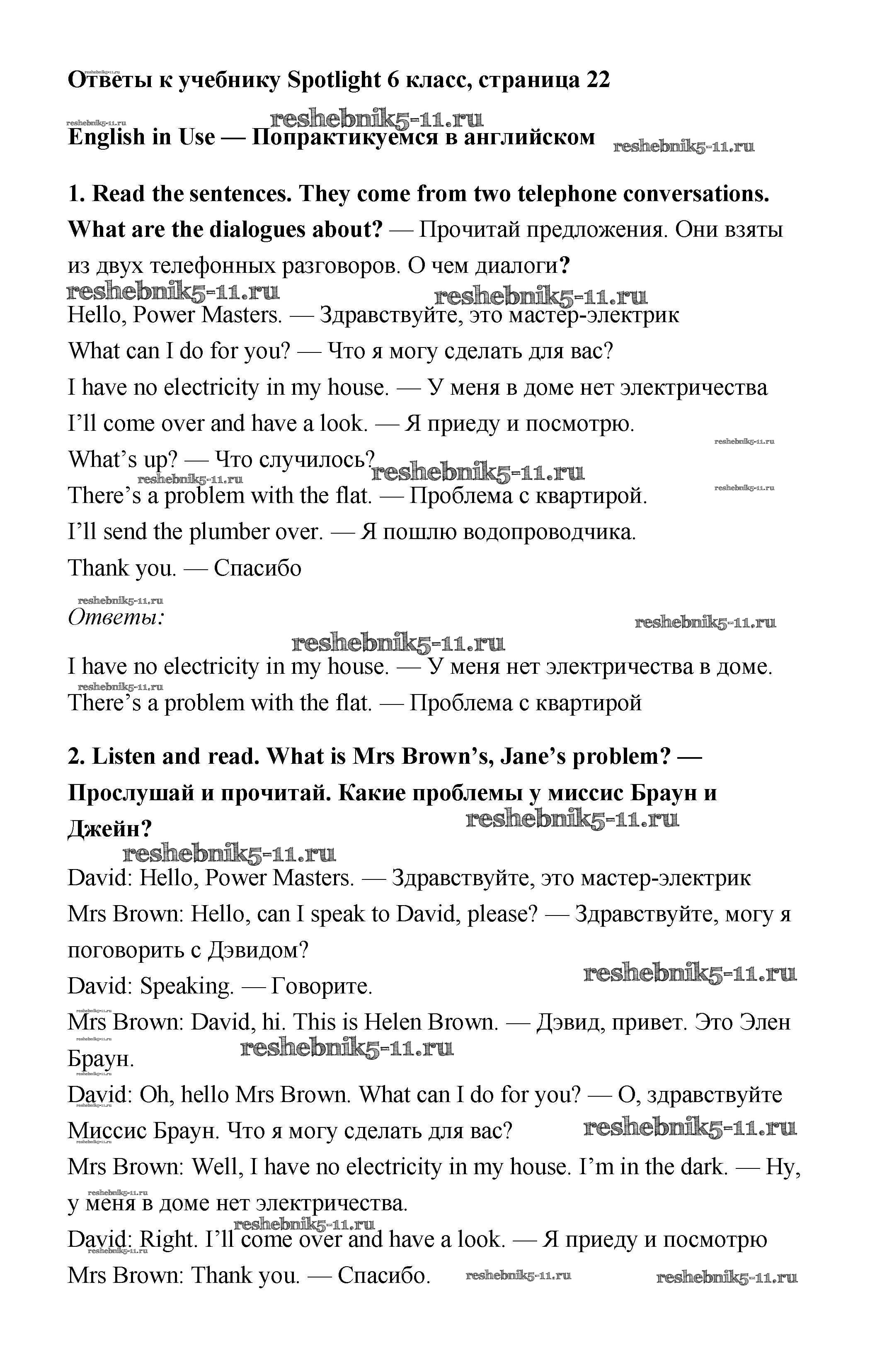 Готовая домашняя работа с ответами по Английскому языку за 6 класс Ваулина, Дули, Эванс, Подоляко Учебник Spotlight Просвещение 2017 ФГОС - Module 2. Here we are! Страницы 22
