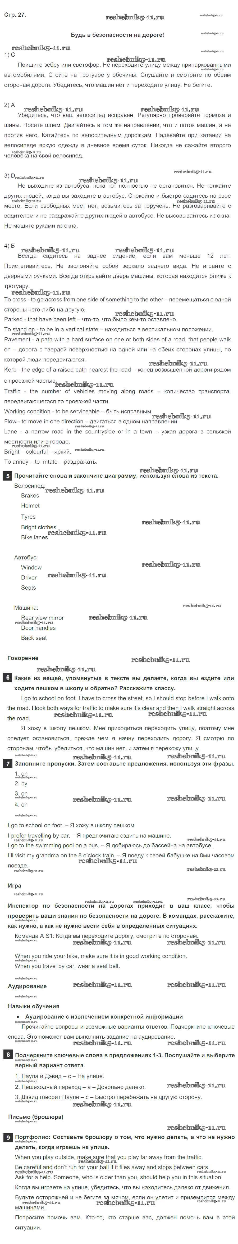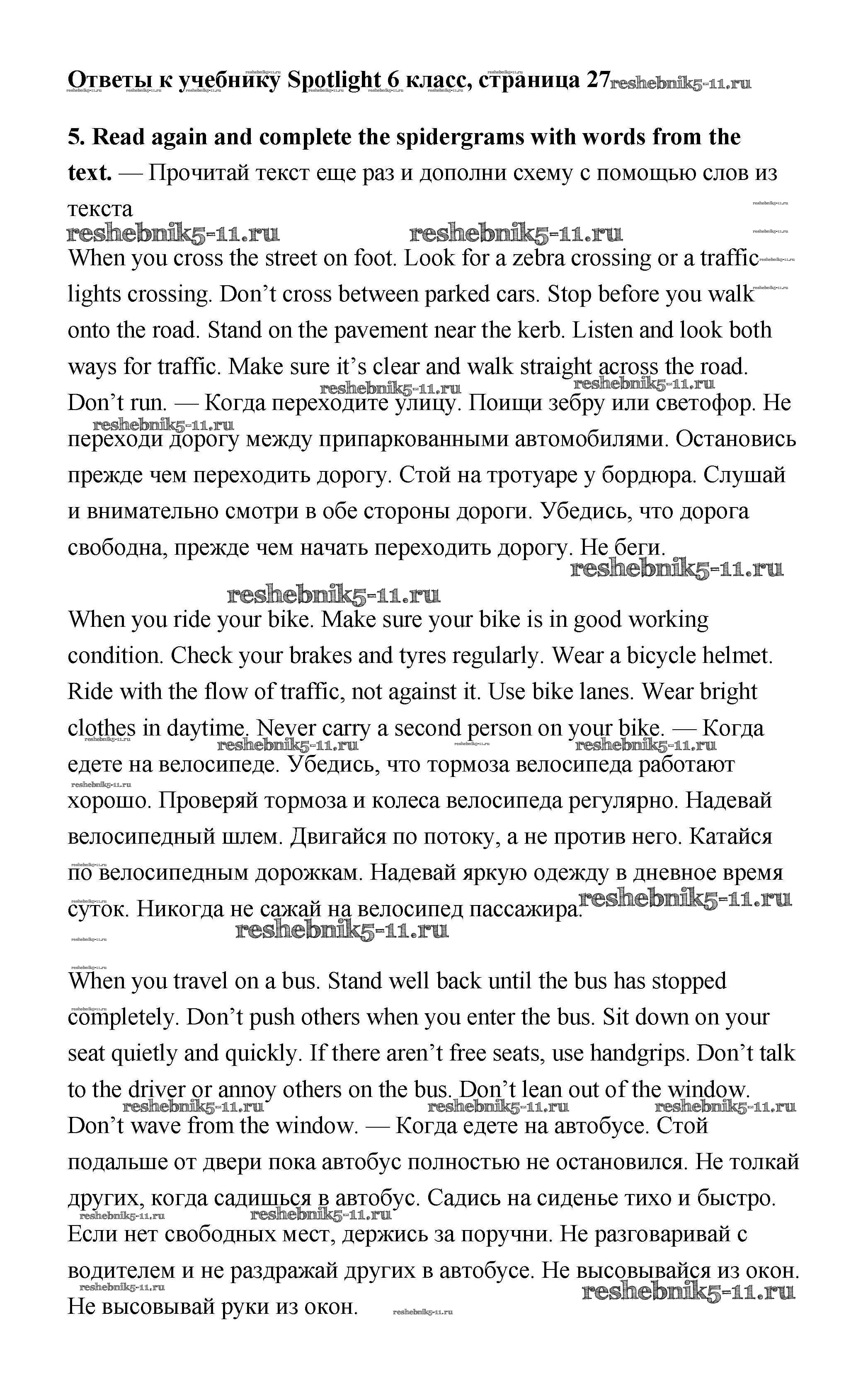 Готовая домашняя работа с ответами по Английскому языку за 6 класс Ваулина, Дули, Эванс, Подоляко Учебник Spotlight Просвещение 2017 ФГОС - Module 3. Getting around. Страницы 27